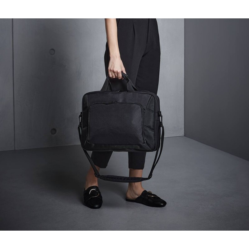 Mixte de polyester 600D/1680D | Compartiments intérieur multiples | Convient à des ordinateurs portables jusqu'à 17 po | Compartiment rembourré pour ordinateur portable | Compartiment à documents | Bandoulière ajustable amovible avec coussinet | Poche avant zippée | Divers compartiments | Dragonne pour une clé USB | Bandoulière pour sac | Poignée rembourrée | Compartiment pour ordinateur portable | Capacité : environ 13 litres | Livraison sans contenu/décoration