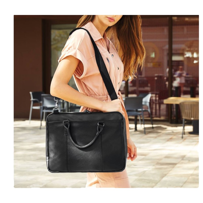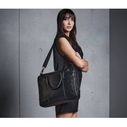 Look imitation simili NuHide® PU | Étiquette détachable pour faciliter le remarquage | Compartiment principal avec fermeture zippée plus longue pour accès plus facile | Poignée en tissu | Détails en bronze | Compartiment rembourré pour ordinateur portable | Convient à des ordinateurs portables jusqu'à 15,6 po | Compartiment intérieur rembourré pour tablette | Entièrement doublé en tissu rayé | Poches intérieures pour rangement documents | Poche intérieure pour objets de valeur avec fermeture éclair | Bandoulière ajustable et amovible | Livraison sans contenu/décoration | Capacité : 9 litres