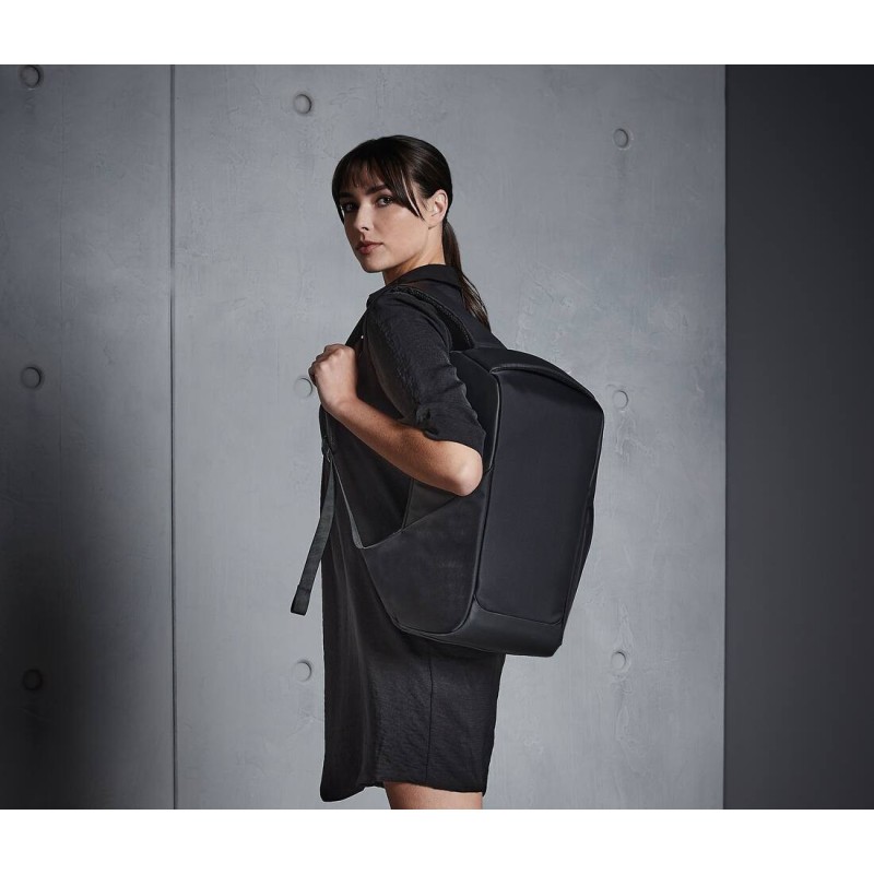 Mélange de Nylon Jacquard et de Polyester enduit | Étiquette détachable pour faciliter le remarquage | Tissu résistant aux coupures | Style minimaliste | Léger, mais durable | Compartiment intérieur rembourré pour tablette | Compartiment rembourré pour ordinateur portable jusqu'à 15,6 po | Poche arrière discrète à fermeture éclair | Multiples poches internes | Poche pour powerbank (chargement media) | Port de chargement USB intégré | Port élastique pour media | Porte-clés | Bandoulière pour sac | Dos rembourré ergonomique | Bretelles réglables rembourrées | Accès invisible compartiment principal | Capacité : 15 litres | Livraison sans contenu/décoration
