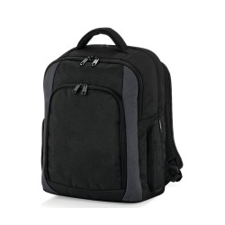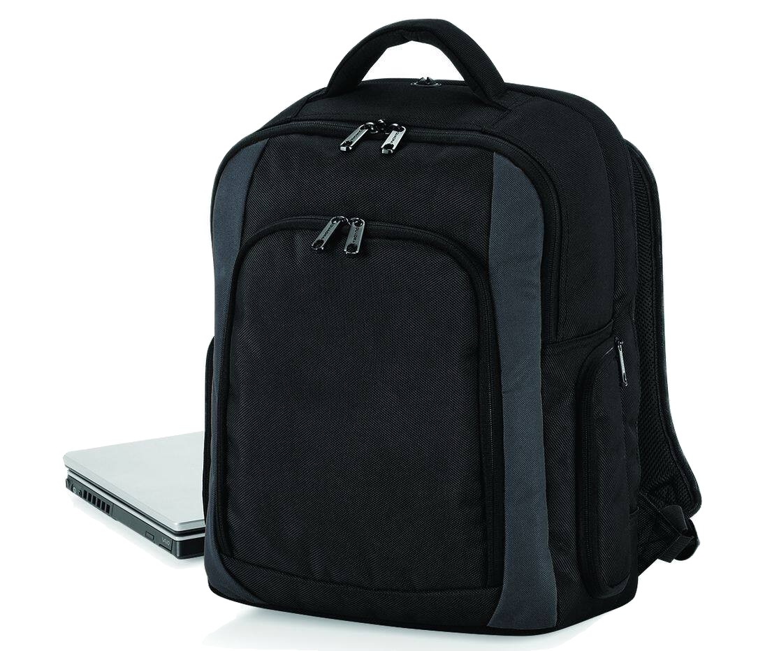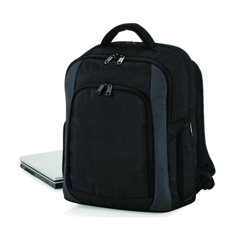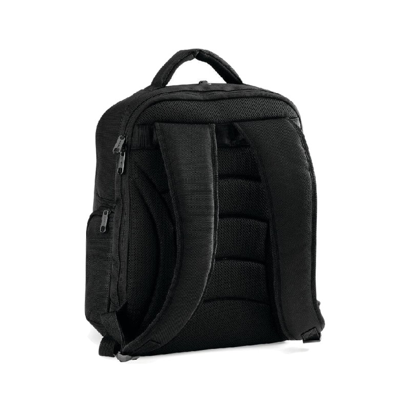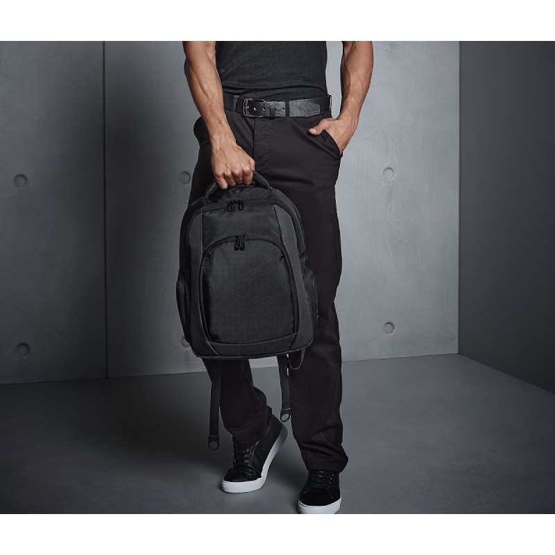Polyester 1680D | Compartiment rembourré pour ordinateur portable | Compartiment avant de rangement | Bretelles réglables rembourrées | Convient à des ordinateurs portables jusqu'à 15,6" | Poche multimédia et port pour écouteurs | Porte-bouteille | Poches latérales à glissière | Poignée | Capacité : 23 litres | Livraison sans contenu/décoration