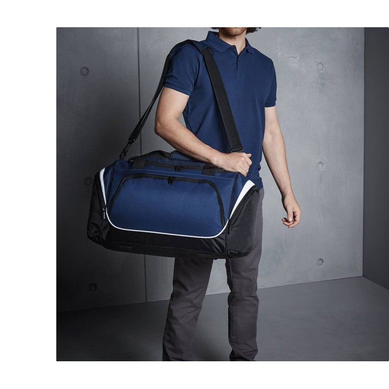 Mixte de polyester 600D/420D | Bandoulière ajustable amovible avec coussinet | Poche à chaussures et poche pour vêtements humides | Poche intérieure pour objets de valeur | Boucle élastique porte-bouteille | Poches zippées aux extrémités | Poches intérieures en filet | Poignée rembourrée | Capacité : 55 litres | Livraison sans contenu/décoration