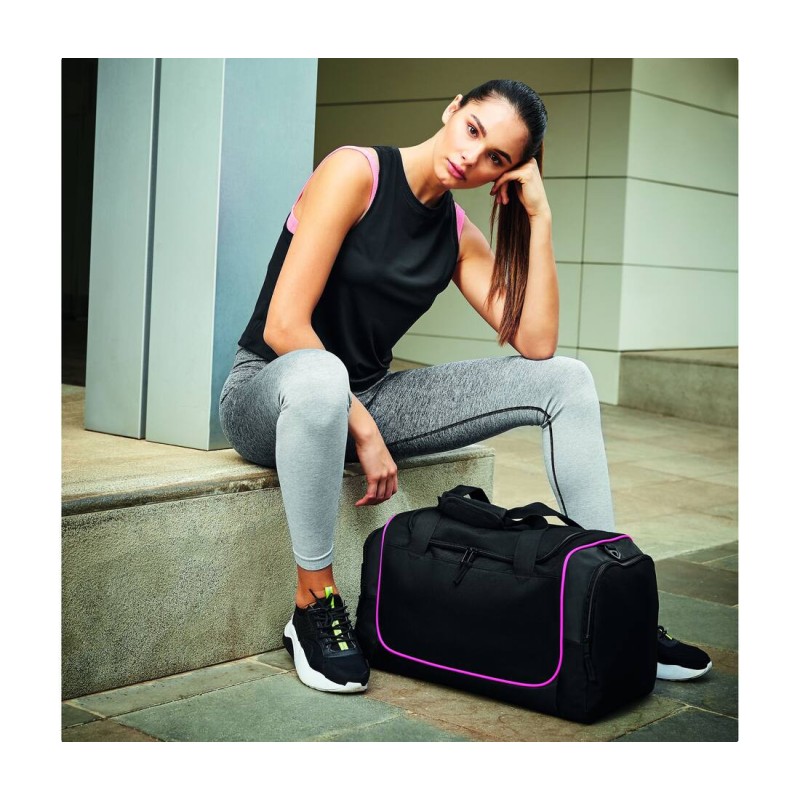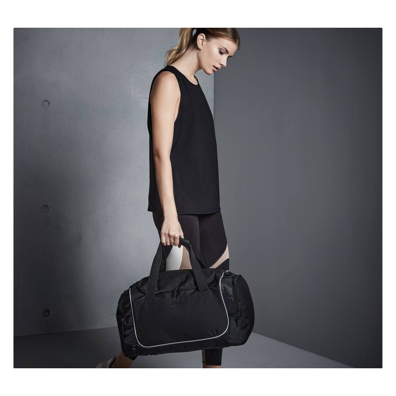 Mélange de polyester 600D/420D | Format compact, convient à la plupart des casiers | Bandoulière ajustable amovible avec coussinet | Compartiments complémentaires spacieux à l'extérieur - un avec doublure en résille | Plinthe interne | Poignée rembourrée | Fond robuste | Capacité : 30 litres | Livraison sans contenu/décoration