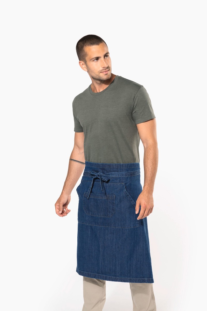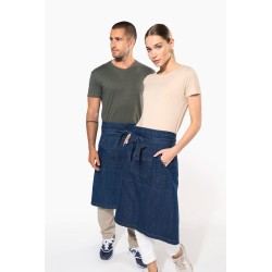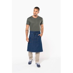 100% coton. Lavage domestique 60°. 2 poches : 1 grande poche kangourou et 1 poche divisée en 2 compartiments. Dimensions : H 62,5 xL 90 cm. Couleur Denim : ce produit a subi un traitement spécial et présente un aspect volontairement vieilli. Ce procédé de fabrication implique des variations de couleurs d'un produit à l'autre et rend chaque pièce unique.
