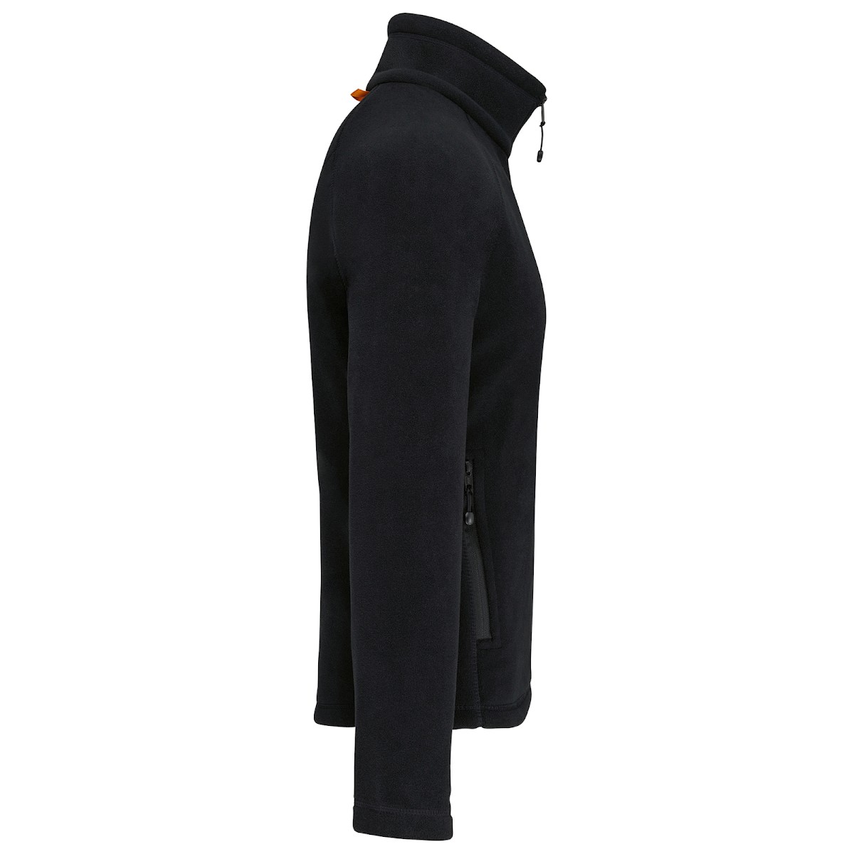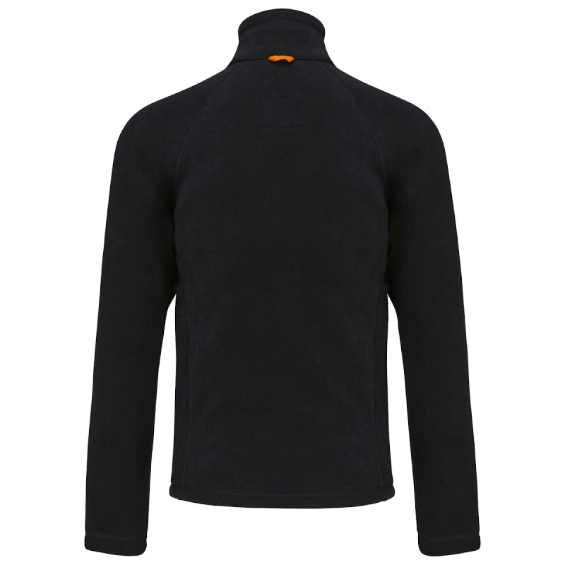 100% polyester. Polyester micropolaire antiboulochage. Manches raglan. Fermeture zippée. 2 poches zippées sur le devant. 2 poches intérieures. Cordon de serrage, bride d'encolure et biais de poches intérieures contrastés.