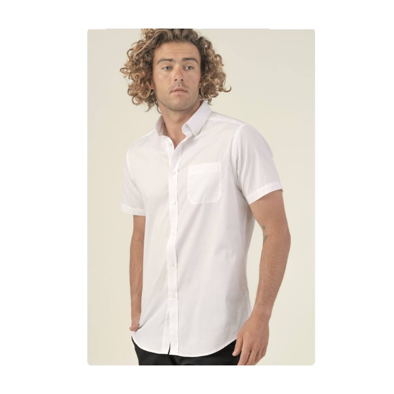 Chemise manches courtes. Col boutonné. Poche côté coeur.