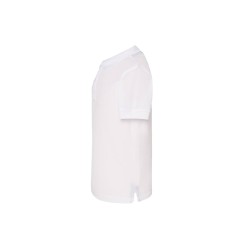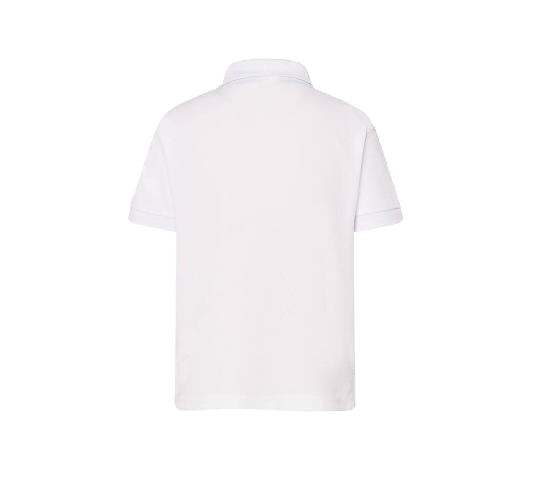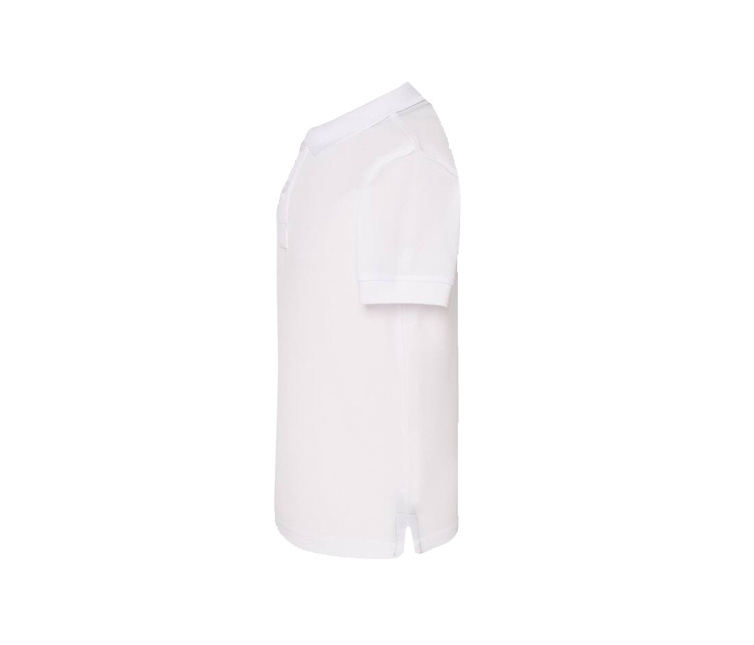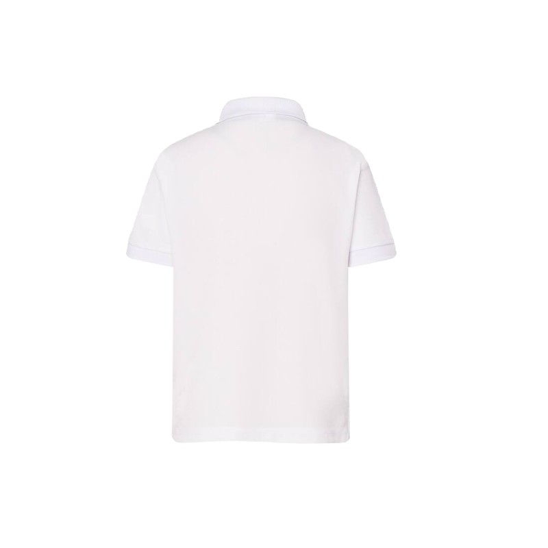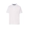 Maille piquée. Plaquette 2 boutons ton sur ton. Bande de propreté de couleur contrastée.