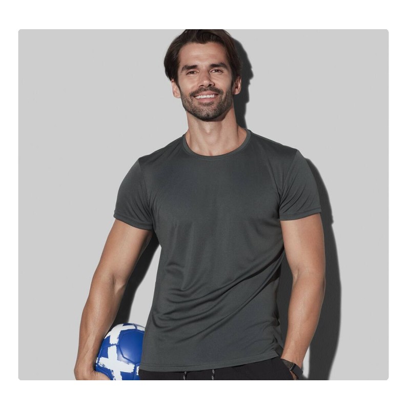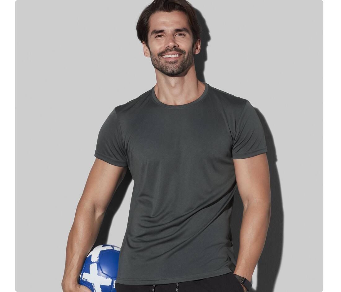 ·140 g/m² ·100% polyester (interlock, ACTIVE-DRY) ·tissu doux ·col fin ·coutures plates décoratives ·petit logo réfléchissant ACTIVE-DRY à l arrière ·coutures latérales ·modèle étroit