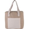 Sac isotherme avec extérieur en toile de jute et poche en coton pour faciliter la personnalisation, intérieur isotherme avec paroi isolante en aluminium et mousse isotherme haute densité. Poignées en coton. Modèle moyen.