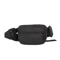 100% polyester 900 DPU. Grand sac banane conçu à partir de 50% de polyester recyclé. Compartiment principal avec fermeture éclair. Poche avant avec fermeture éclair pour faciliter la personnalisation. Pochette latérale avec fermeture éclair.