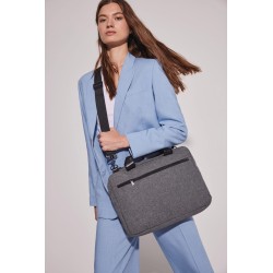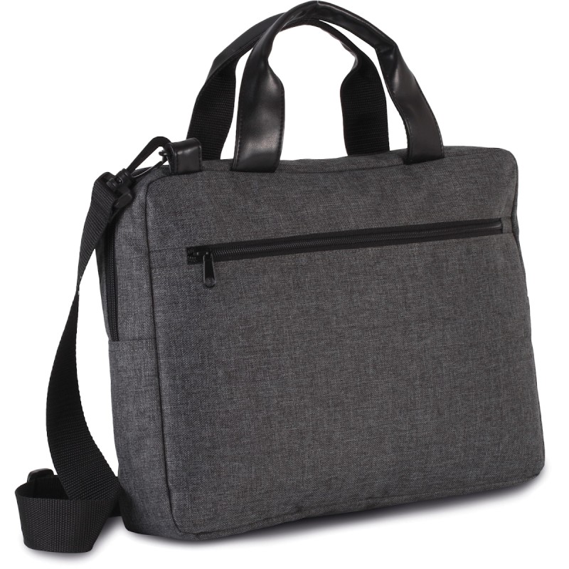 Sac porte-document / Ordinateur en polyester 600D. Compartiment matelassé pour loger un ordinateur jusqu'à 13 pouces, poche devant zippée, poignées de couleur contrastée. Lanière d'épaule amovible.
