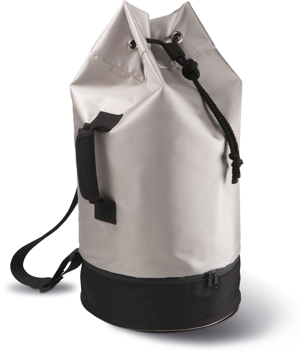 Sac marin en polyester 1680D, compartiment à chaussures, zip waterproof, bretelles ajustables, oeillets couleur métal.