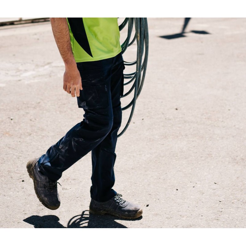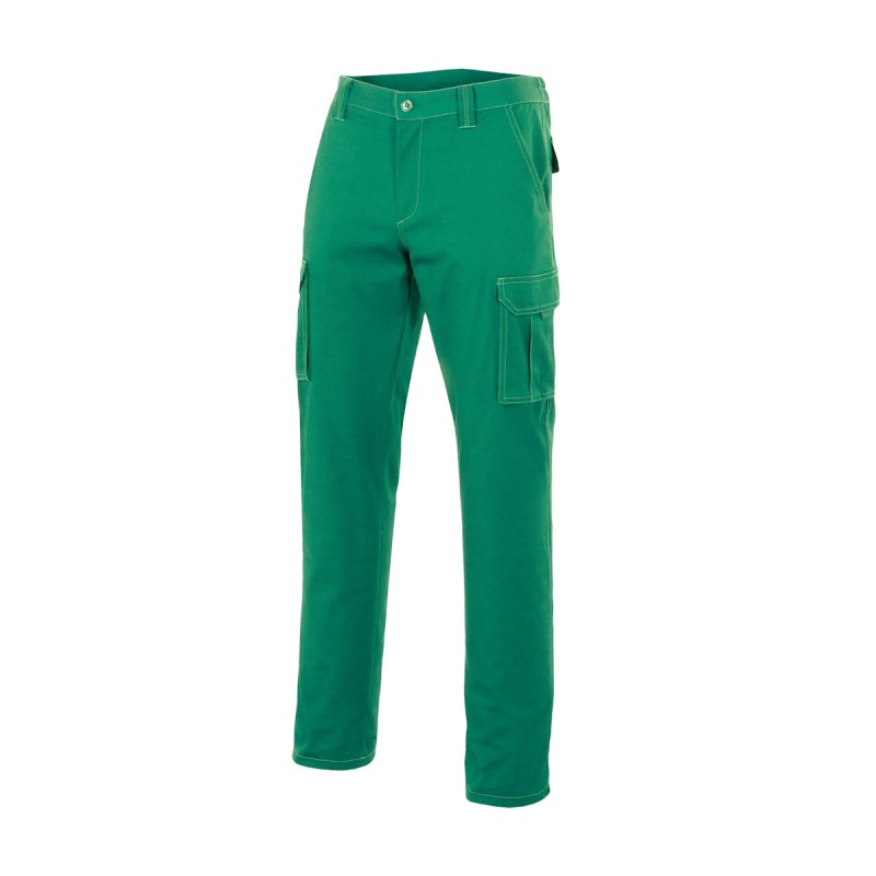 Fermeture centrale à glissière et bouton. Coutures contrastées. Taille élastiquée. Double couture de sécurité. Six poches : 2 poches latérales. 2 poches avec double rabat central, Velcro® et curseurs. 2 poches arrière avec rabat et Velcro®.