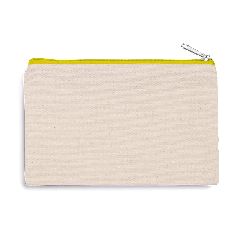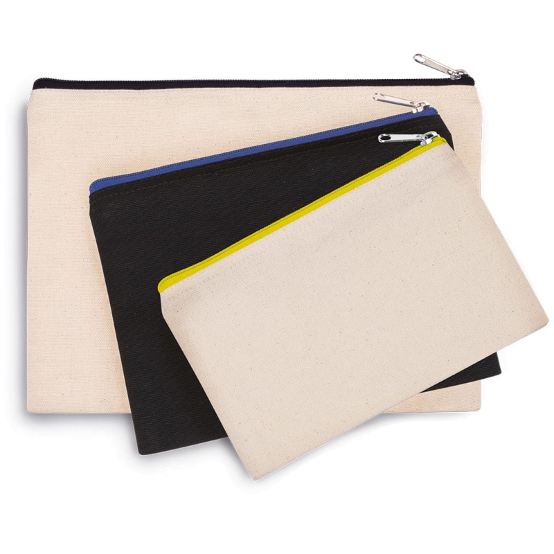 Pochette en coton canvas, fermeture zippée de couleur contrastée. Petit modèle.