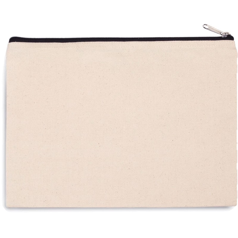 Pochette en coton canvas, fermeture zippée de couleur contrastée. Grand modèle.