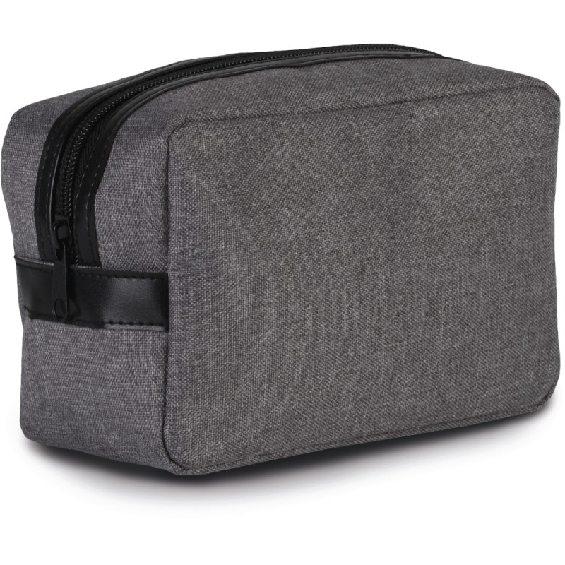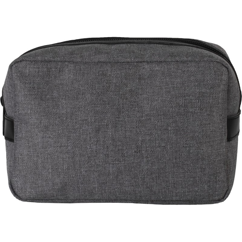 Trousse de toilette en polyester 600D ton sur ton et finitions contrastées en PU simili cuir. Doublure intérieure en polyester 210D.