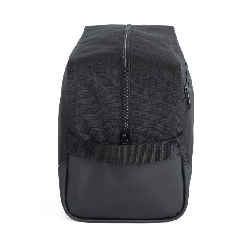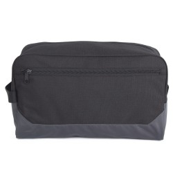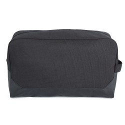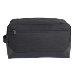 100% polyester. Grande pochette de toilette avec fermeture à glissière. Grande poche extérieure zippée pour faciliter la personnalisation. Ruban latéral pour faciliter le transport.