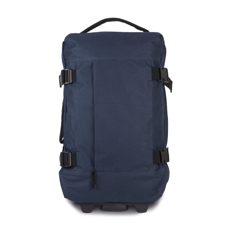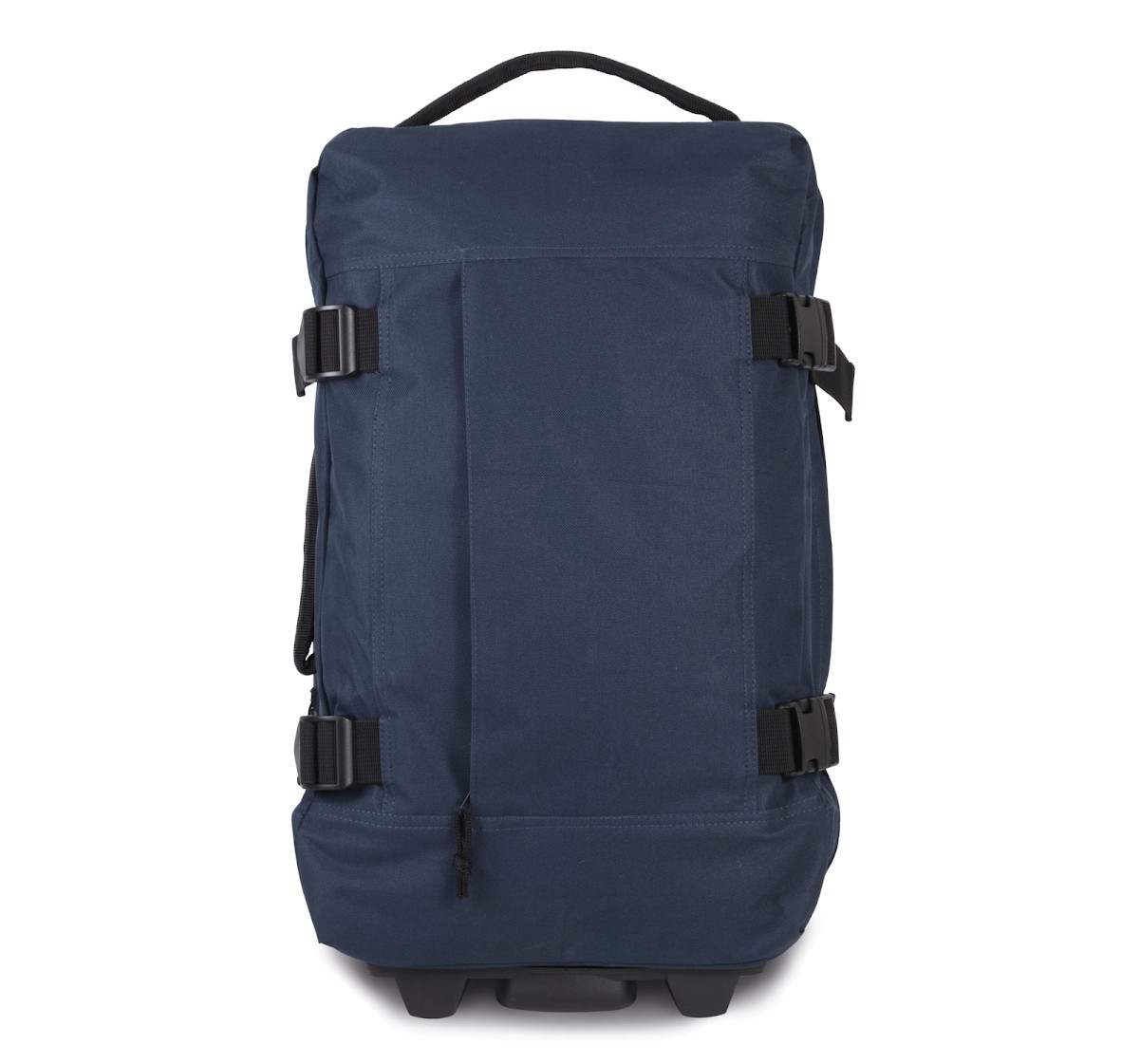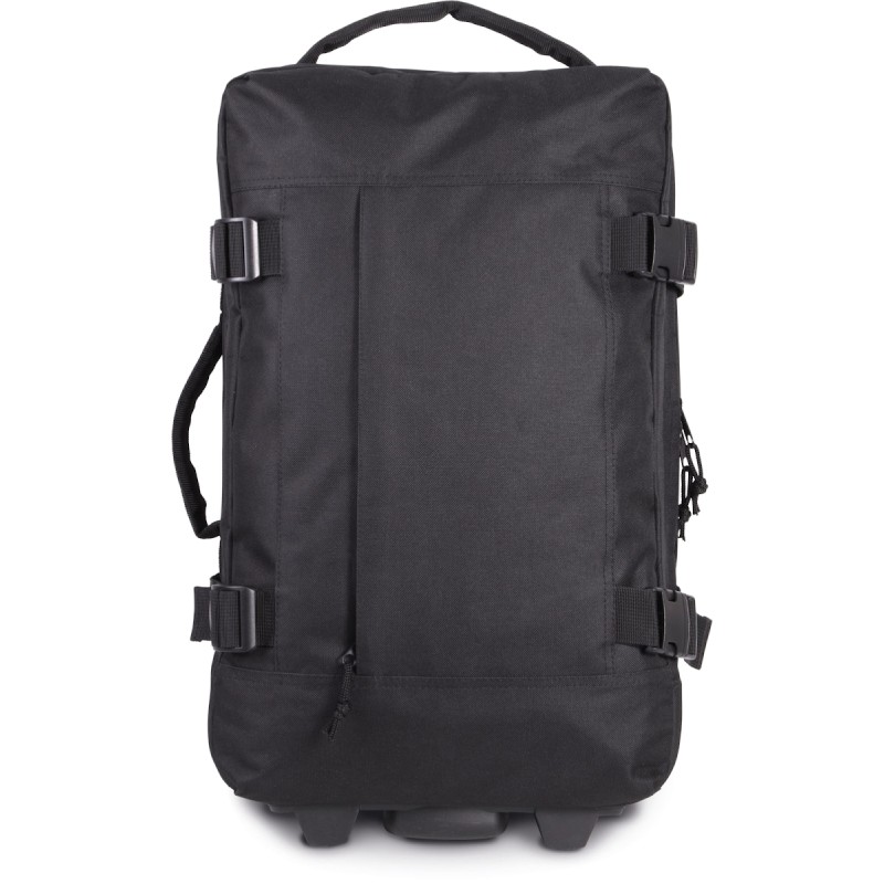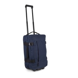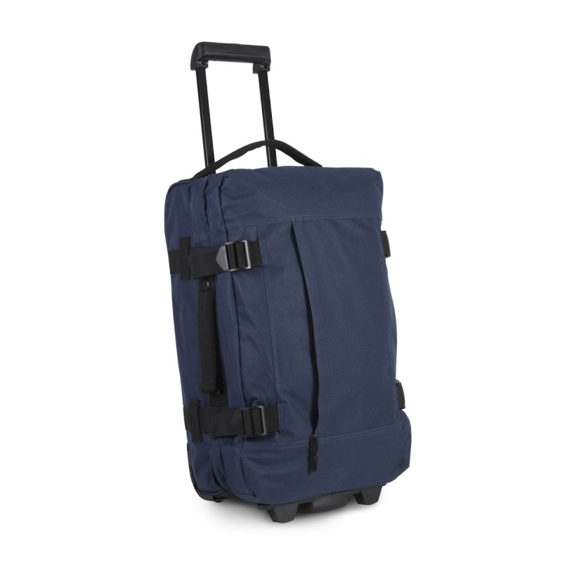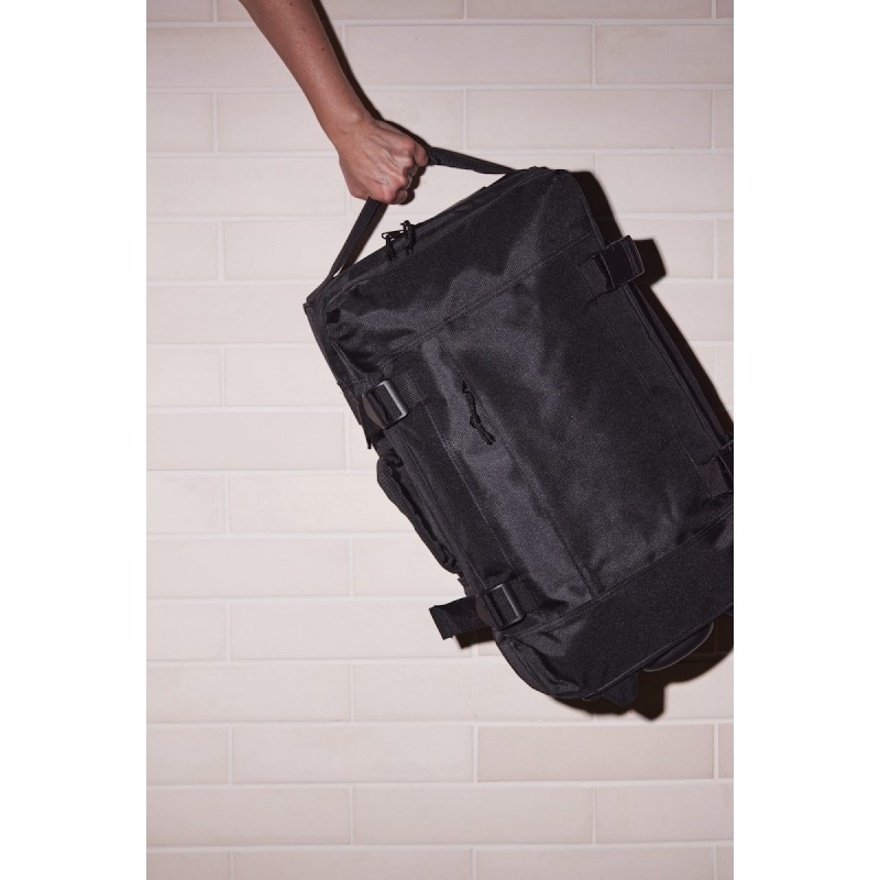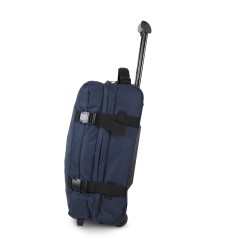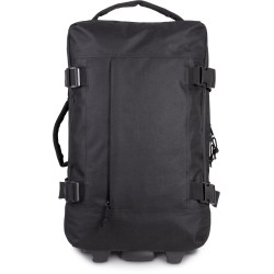 Sac trolley cabine en polyester 600D avec grande poche zippée à l'avant pour faciliter la personnalisation. Deux compartiments internes avec sangles de maintien. Sangles de compression extérieures pour ajuster le volume. Base avec renforcement en relief et points d'arrêt sur les poignées.