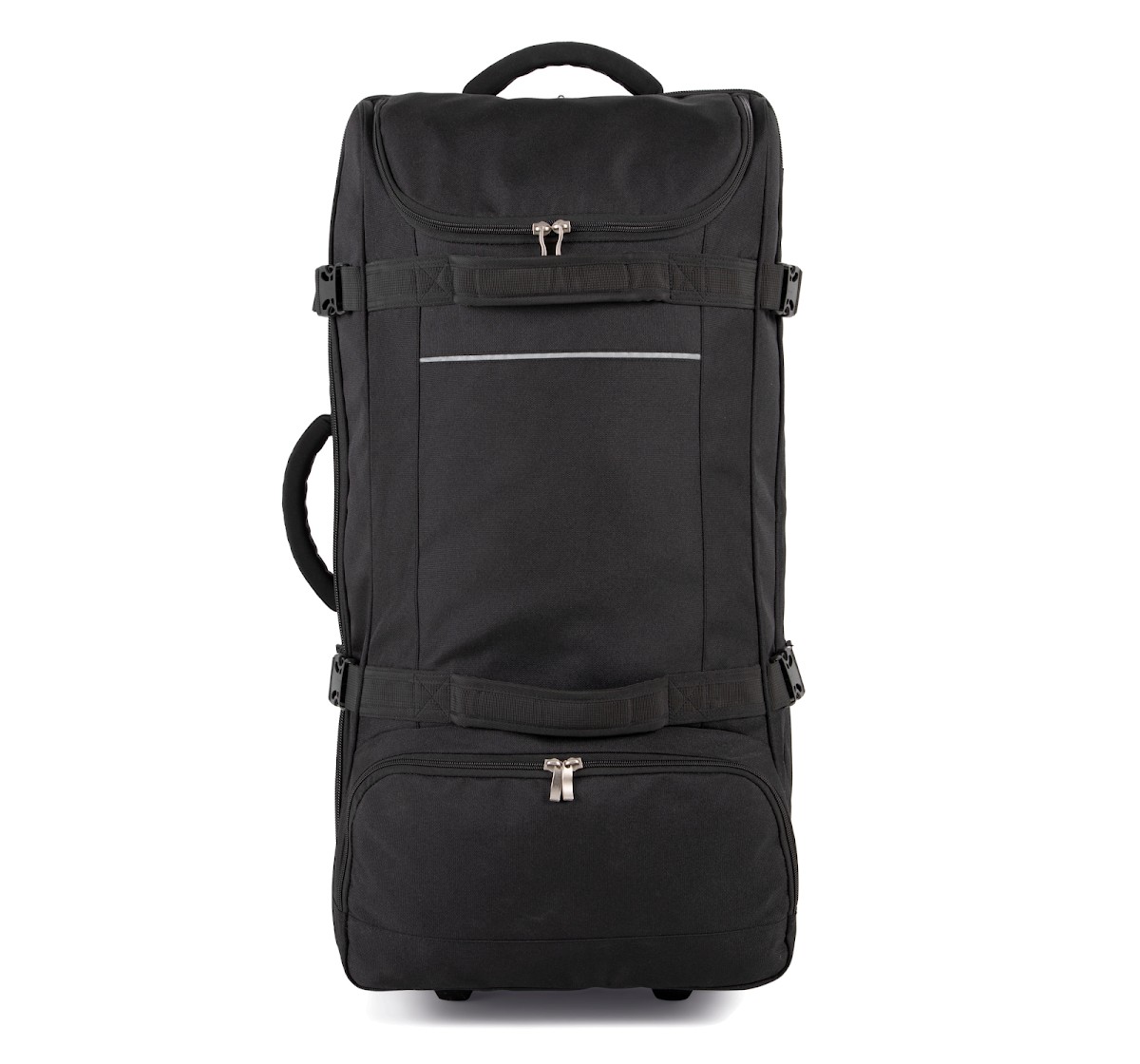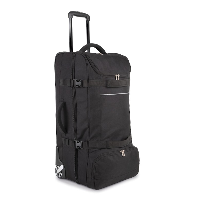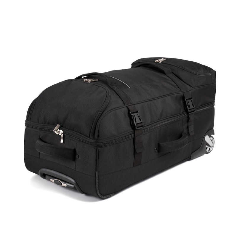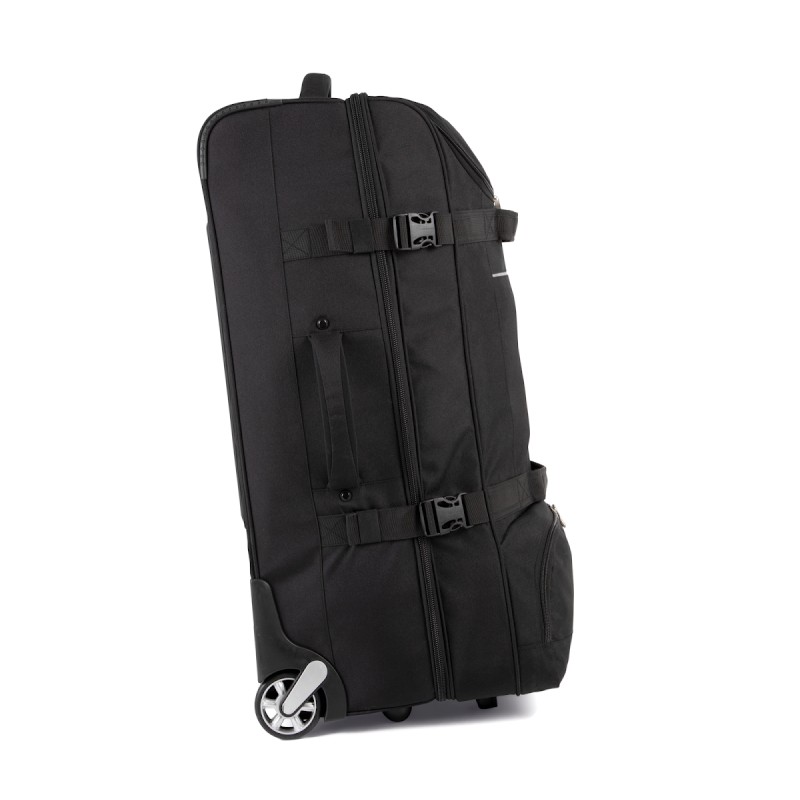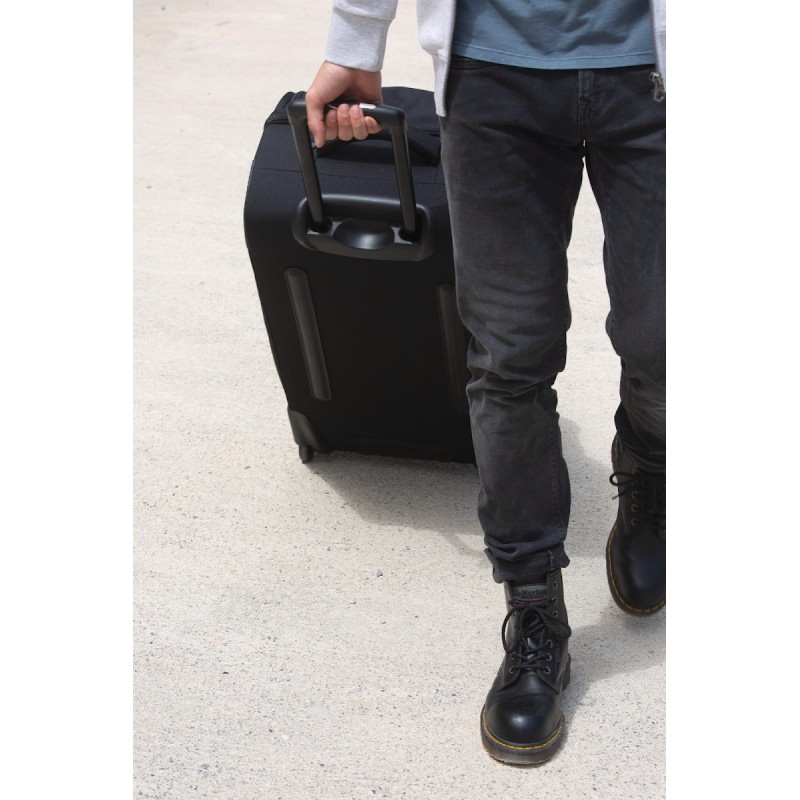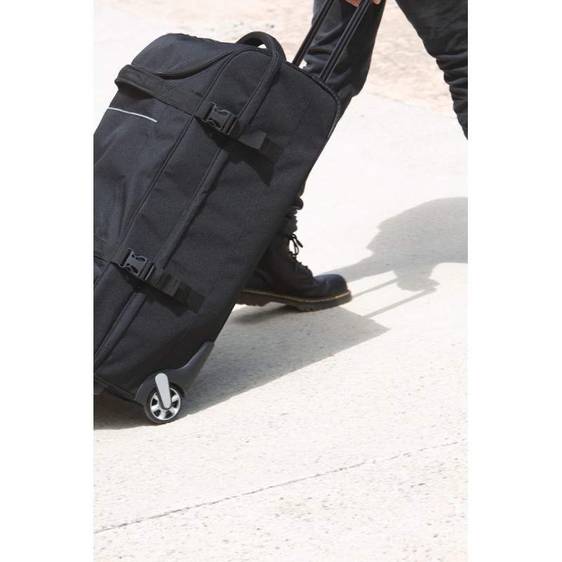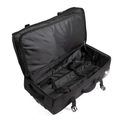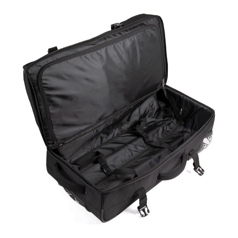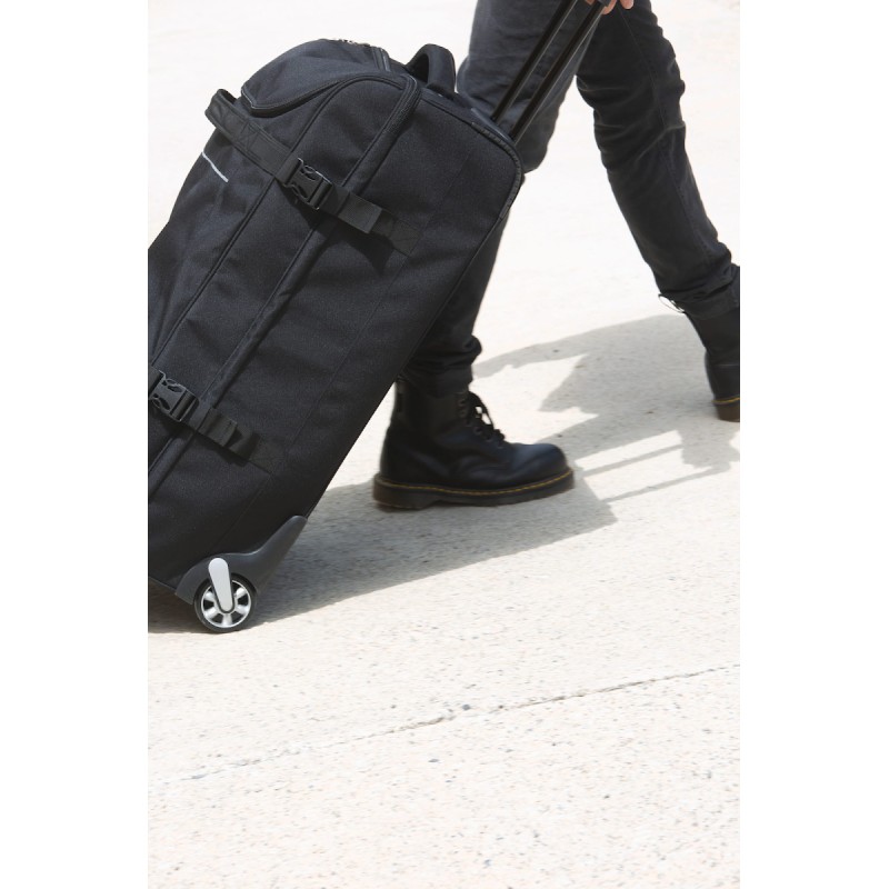 100% polyester. Ouverture en portefeuille. Ouverture supérieure avec grand compartiment facilitant la personnalisation. Sangles de compression latérales. Barres de renfort et protection au dos. Poignées latérales supérieure pour une grande maniabilité, même à pleine charge.