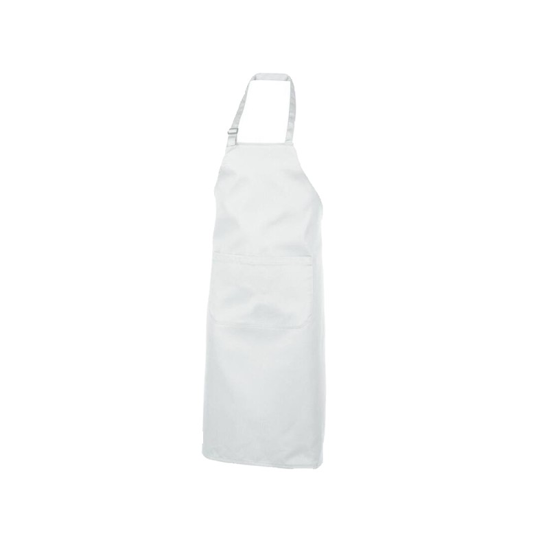 Tablier avec grande poche. Hauteur 90 cm, largeur 75 cm. Lavage 60°.