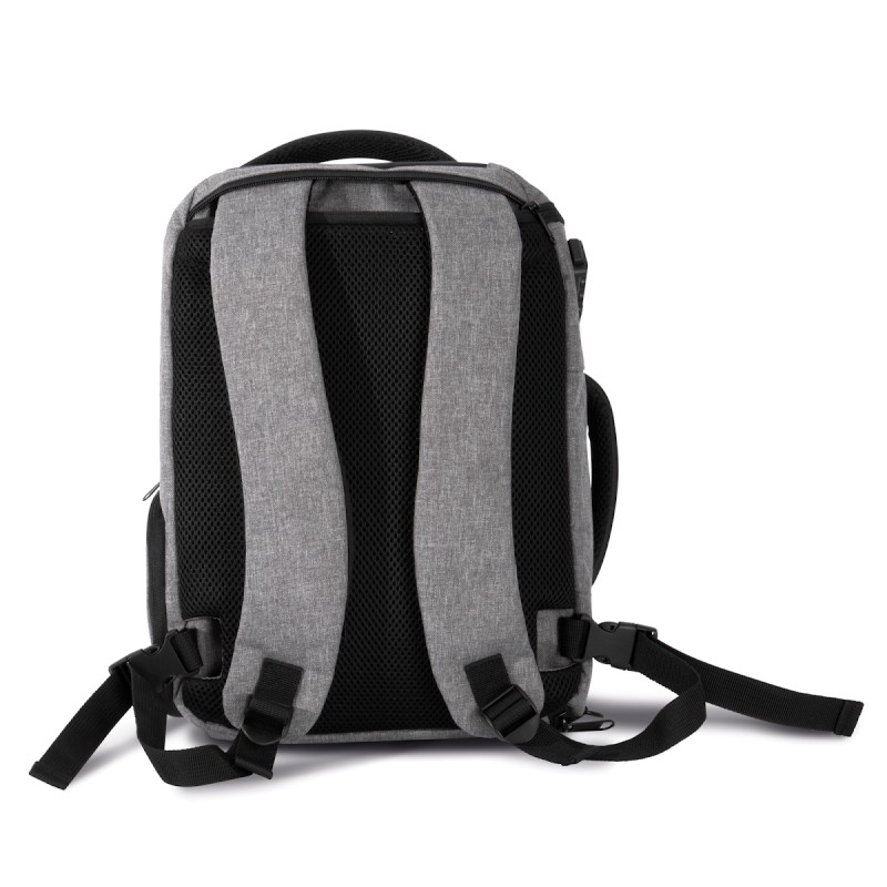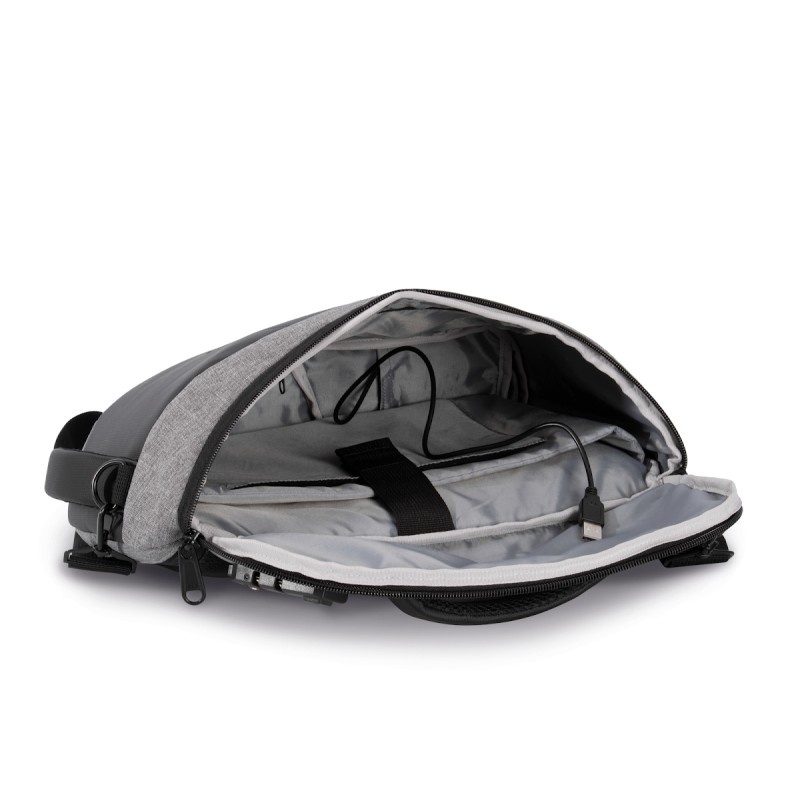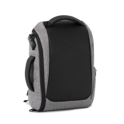 100% polyester recyclé. Petite version du KI0888 pour tablette de 13". Fermeture zippée au dos avec système de verrouillage TSA. Poche zippée à accès rapide au dos. Bretelles et sangles de poitrine ajustables. 2 poches zippées sur les bretelles. 2 sangles d'attache sous le sac pour transporter pulls, vestes, etc. 2 poches sur les côtés. 1 poche côté avec port USB intégré et câble micro USB interne (fourni) permettant le branchement du Powerbank. 1 poche côté avec câble antivol spirale pour attacher le sac à un pied de table ou de chaise. 2 poches zippées en filet. 2 poches zippées détachables pour câbles ou accessoires. 2 poches intérieures dont 1 pour les bouteilles/gourdes et 1 pour stocker la powerbank.