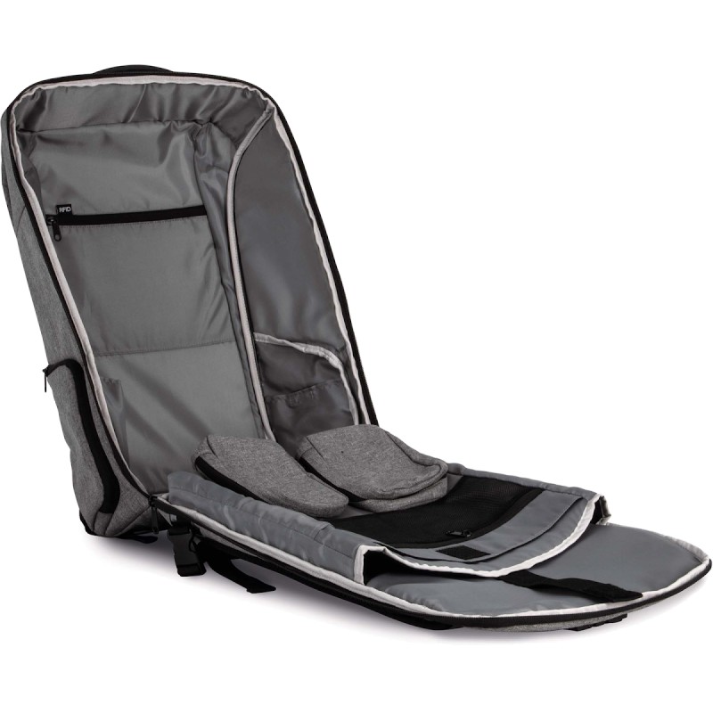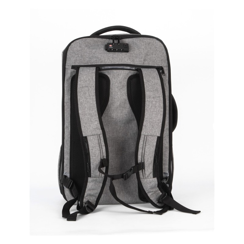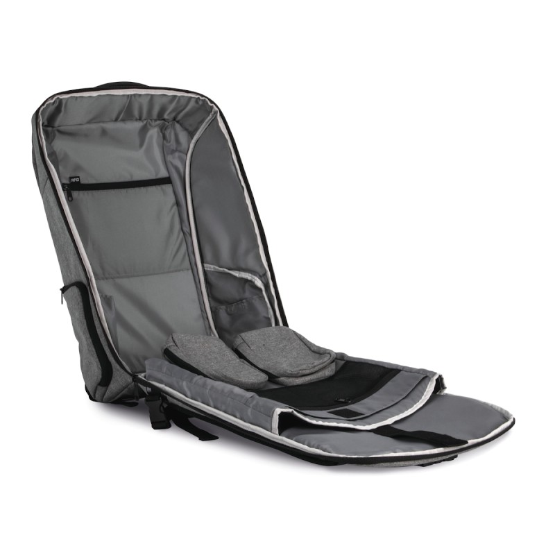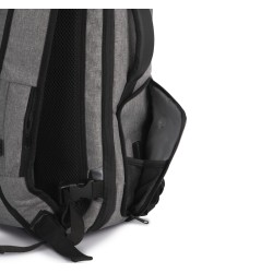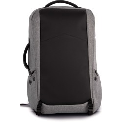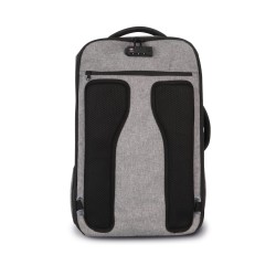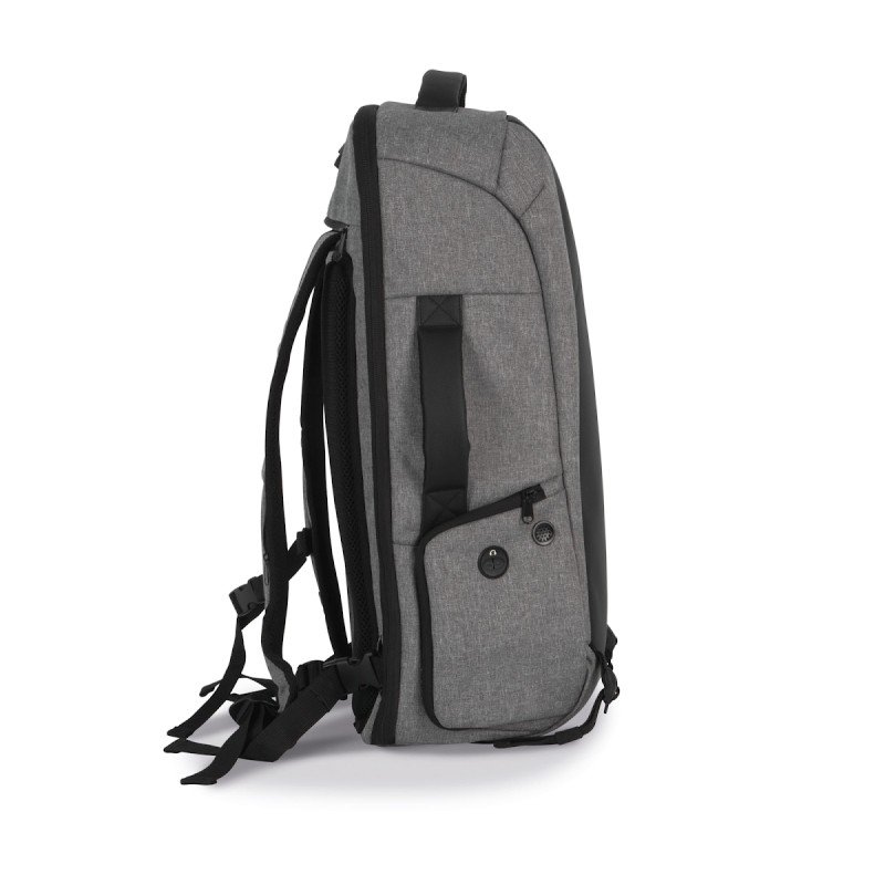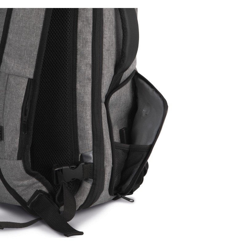 100% polyester. Dont 50% de polyester recyclé. Compagnon de voyage. Ses particularités : fermeture à glissière antivol avec système TSA par combinaison ; poche latérale avec câble antivol ; poche interne avec une protection RFID ; renforts matelassés dorsaux ; bretelles ajustables matelassées ; sangle de poitrine réglable ; 2 sangles d'attache sous le sac ; 2 poches sur le côté ; 1 poche de chargement sur le côté avec port USB et micro USB ; 2 poches zippées sur les bretelles ; 1 bandoulière matelassée amovible ; 1 compartiment intérieur pour ordinateur et tablette ; 1 poche filet et 2 pochettes zippées amovibles pour câbles et accessoires.