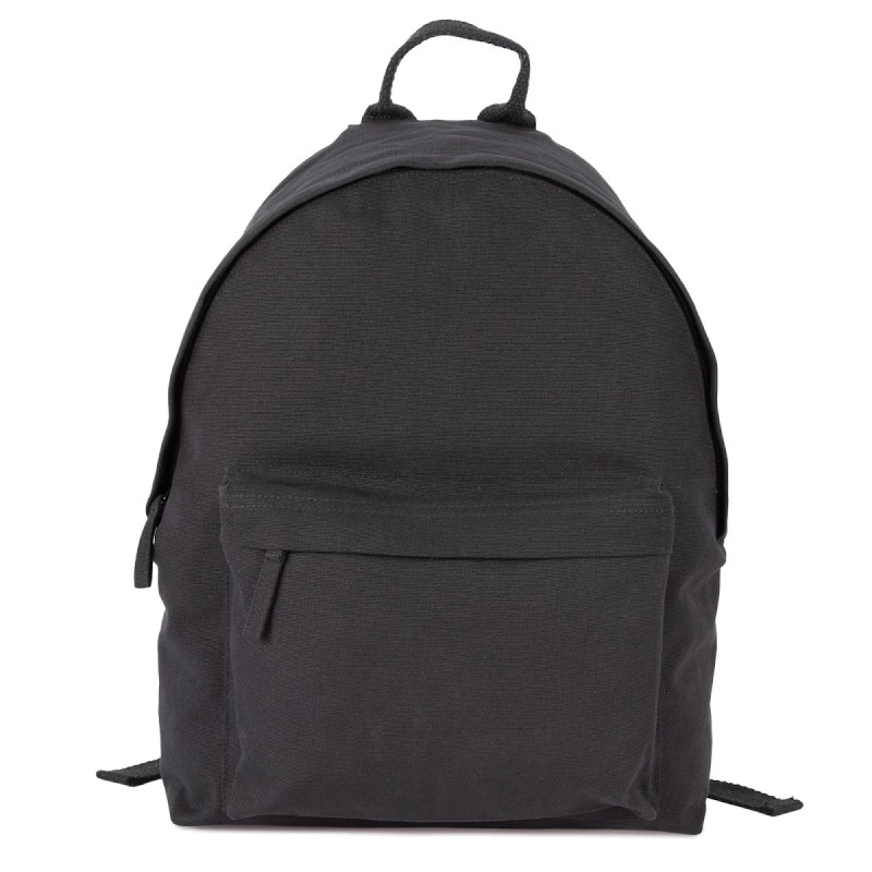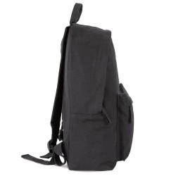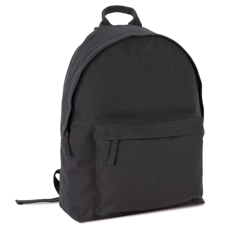 100% coton. Sac à dos avec poche avant zippée, dos matelassé, bretelles ergonomiques et ajustables.