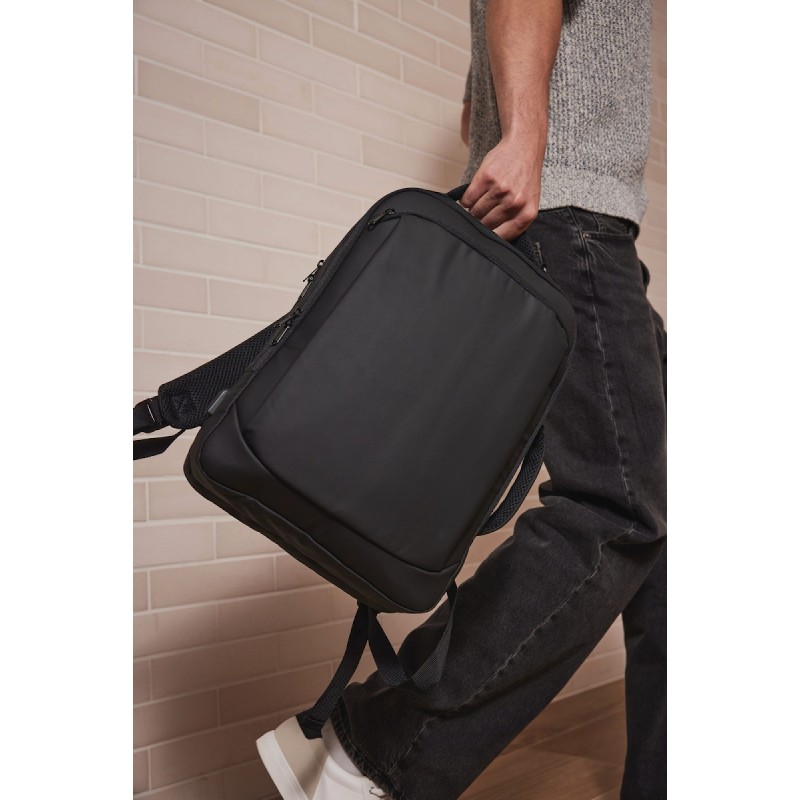 100% polyester recyclé. Sac à dos de travail avec compartiment rembourré pour ordinateur (jusqu'à 15 pouces) et/ou tablette. Compartiment principal organisé et porte-documents. Grâce aux bretelles amovibles rembourrées dissimulées dans le dos, le sac à dos se transforme en sacoche de travail horizontale avec sa propre poignée latérale. Grande poche supérieure zippée. Grande poche frontale double avec deux ouvertures indépendantes et compartiments de rangement à droite et à gauche avec fermeture éclair. Connecteur externe de type C avec câble interne pour le branchement d'une banque d'alimentation. Kialma est la collection haut de gamme de sacs et d'accessoires de K-loop. Les produits K-loop détiennent des marqueurs dans le fil et grâce à la technologie blockchain, cela permet une traçabilité de toute la chaîne de production. Une étiquette spéciale avec un QR code permet d'accéder à la plateforme Aware™ et d'authentifier directement les certifications avec un simple smartphone.