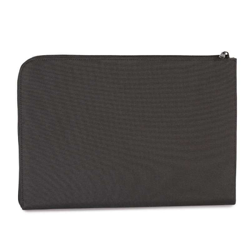 100% polyester recyclé. Housse rembourrée pour documents et/ou tablettes avec fermeture éclair en L sur deux côtés. Pochette intérieure. Kialma est la collection haut de gamme de sacs et d'accessoires de K-loop. Les produits K-loop détiennent des marqueurs dans le fil et grâce à la technologie blockchain, cela permet la traçabilité de l'ensemble de la chaîne de production. Une étiquette spéciale avec un QR code permet d'accéder à la plateforme Aware™ et d'authentifier directement les certifications avec un simple smartphone.