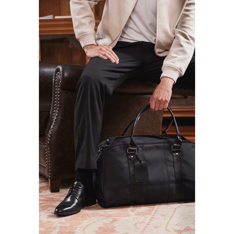 100% polyester recyclé. Grand sac de voyage qui peut être utilisé comme bagage à main, idéal pour des voyages de 48 ou 72 heures. Longue bandoulière réglable et amovible avec épaulette rembourrée pour plus de confort. Poche intérieure zippée. Grandes poignées renforcées avec bandes contrastantes sur le corps du sac pour pouvoir le porter à la main ou sur l'épaule. Pieds métalliques sur le dessous du sac. Kialma est la collection haut de gamme de sacs et d'accessoires de K-loop. Les produits K-loop détiennent des marqueurs dans le fil et grâce à la technologie blockchain, cela permet la traçabilité de l'ensemble de la chaîne de production. Une étiquette spéciale avec un QR code permet d'accéder à la plateforme Aware™ et d'authentifier directement les certifications avec un simple smartphone.
