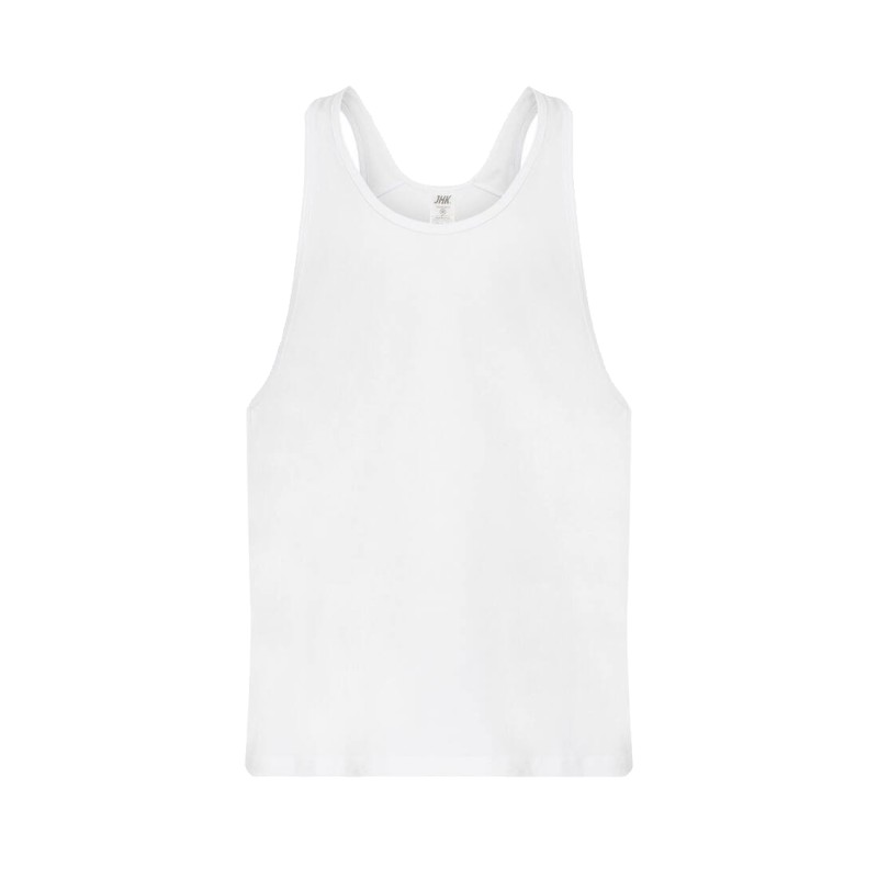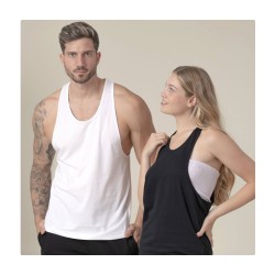 Col et emmanchures en tissu. Dos nageur. Larges emmanchures.