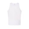 Col et emmanchures en tissu. Double surpiqûre au cou, épaules et taille. Étiquette amovible.