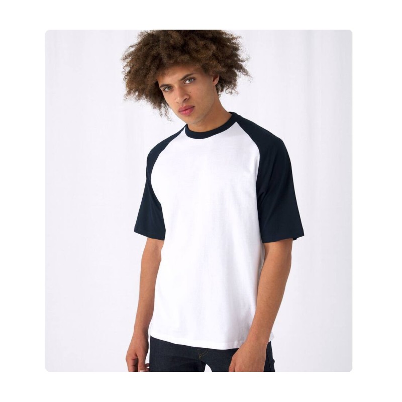 Coupe tubulaire. Col coton/élasthanne. Manches raglan contrastées.