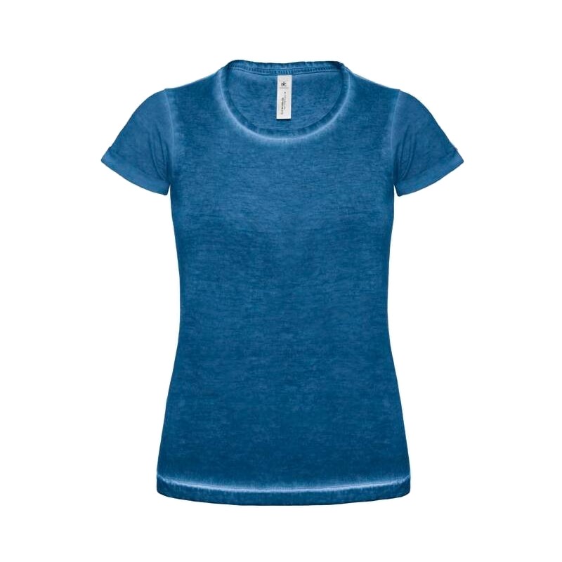 100% coton pré-rétréci Ring-Spun. T-shirt manches courtes tendance en Single Jersey teinté à froid. Coupe féminine. Col rond ras-du-cou avec bande de propreté. Manches montées. Pigmentation accentuée sur les coutures (col, bords de manche et bord inférieur). Finition des manches : ourlet plié à brides d'arrêt, renforçant également l'effet de pigmentation. Coutures invisibles sur le bord inférieur.