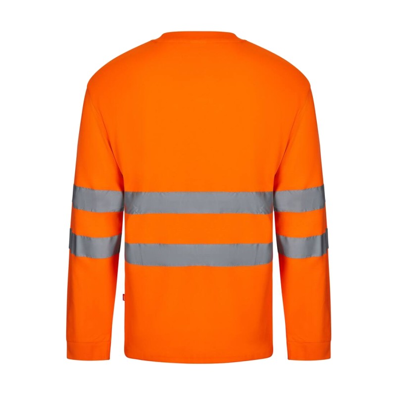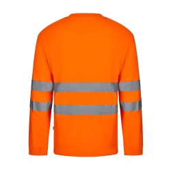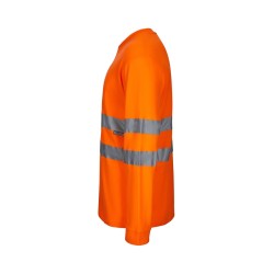Maille piquée. 2 bandes réfléchissantes horizontales aux manches et sur le corps. Double coutures. Conforme à la certification EN20471 Classe 2.