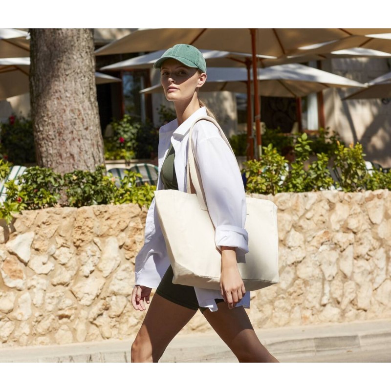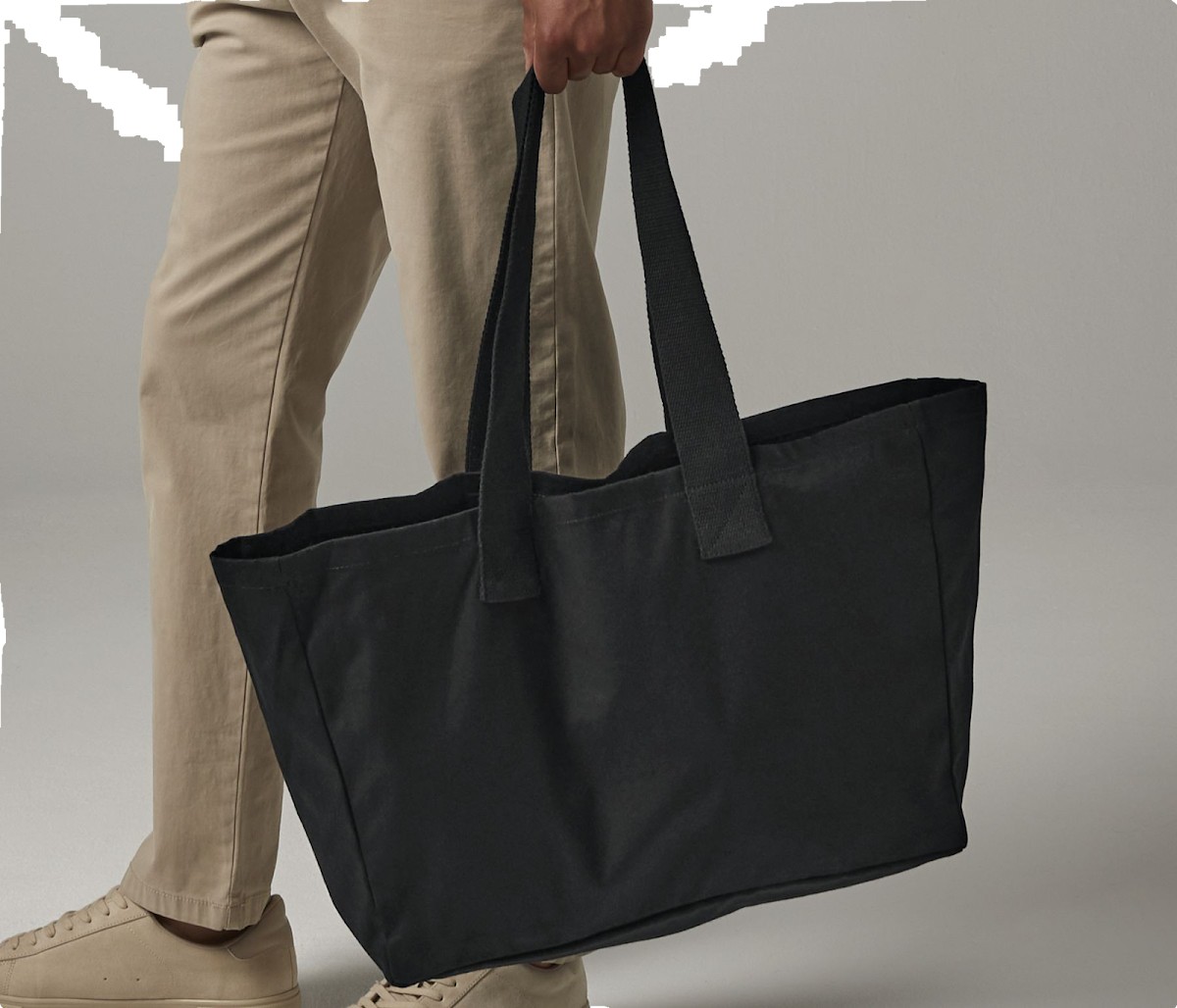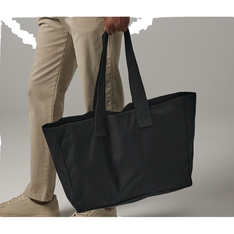 Modèle oversize. Anses en toile douce de 83 cm. Peut se porter à la main ou sur l'épaule.