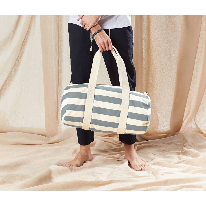 100% toile de coton brossée - 407 g/m129 | Design rayures imprimées | Fermeture zippée | Poignée de transport tissée | Livraison sans contenu/décoration