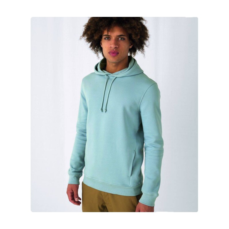 Sweat-shirt à capuche, organique ou organique en conversion et au design tendance. Capuche doublée avec cordon. Bande de propreté en chevron.