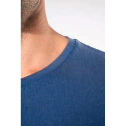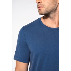 100% coton. Tissu en maille jersey avec un traitement spécial pour un aspect "délavé". Encolure ronde. Bande de propreté à l'encolure. Finition double aiguille bas de manche et bas de vêtement. Pas d'étiquette de marque au col, uniquement une puce de taille pour faciliter la personnalisation. Ce produit a subi un traitement spécial et présente un aspect volontairement vieilli. Ce procédé de fabrication implique des variations de couleurs d'un produit à l'autre et rend chaque pièce unique.