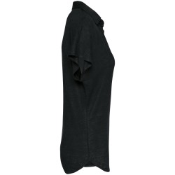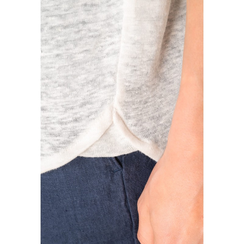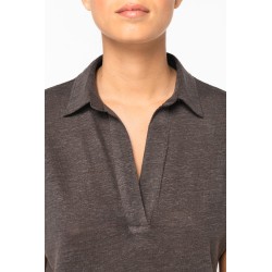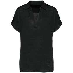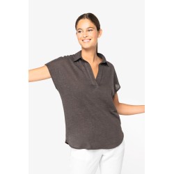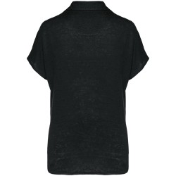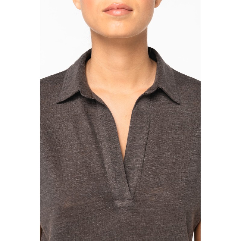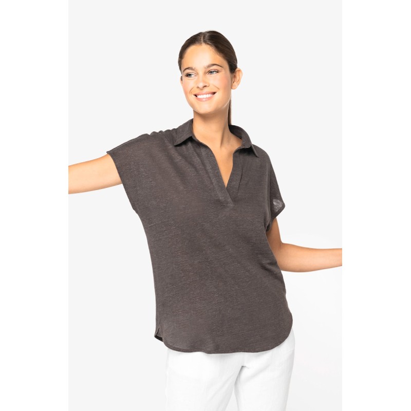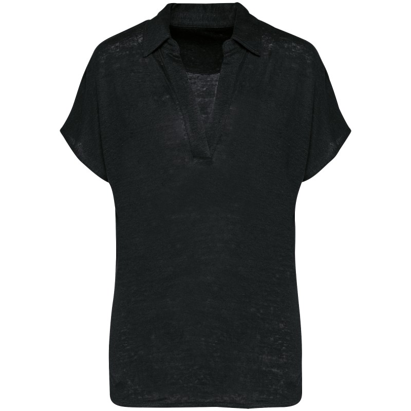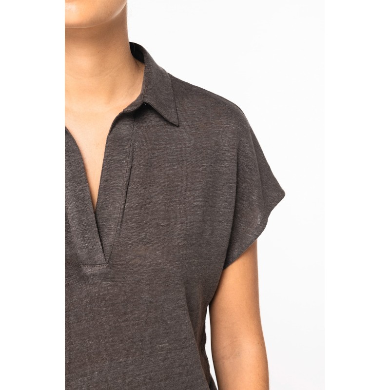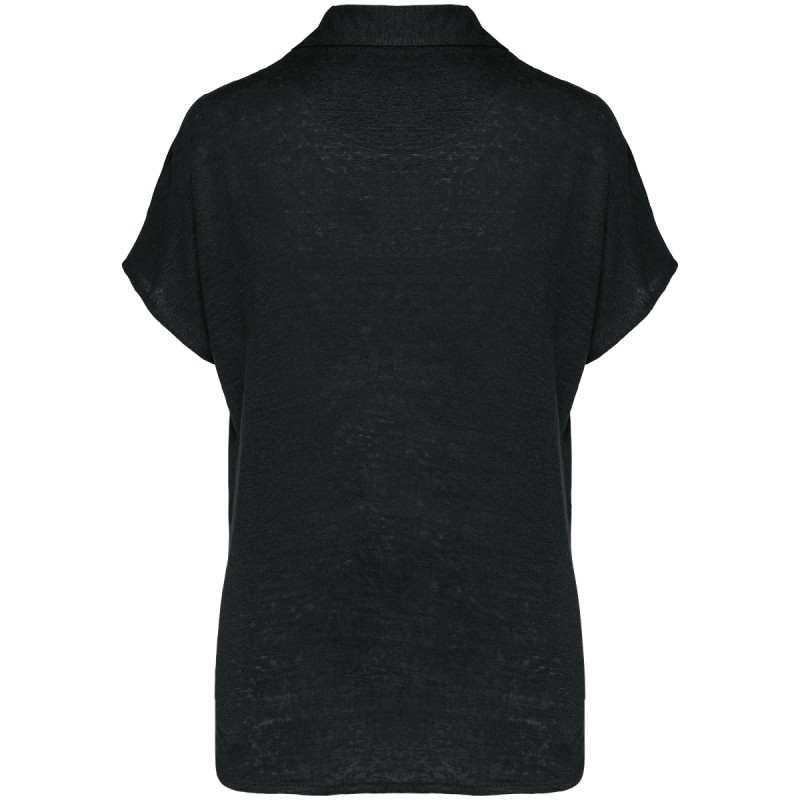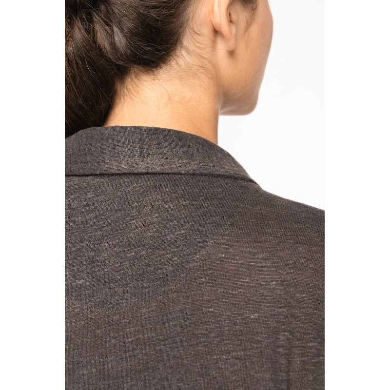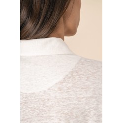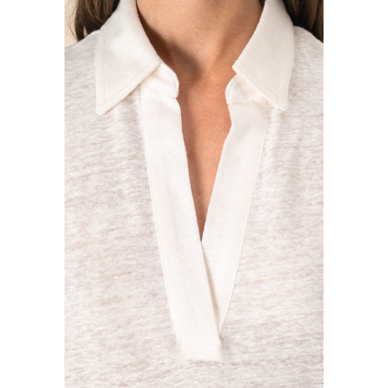 100% lin. Maille. Coupe ajustée avec manches tombantes. Fentes côtés finition hirondelle. Col avec pied de col et patte polo en V sans bouton en matière principale. Double surpiqûre bas de manches et bas de vêtement. Demi-lune au dos.