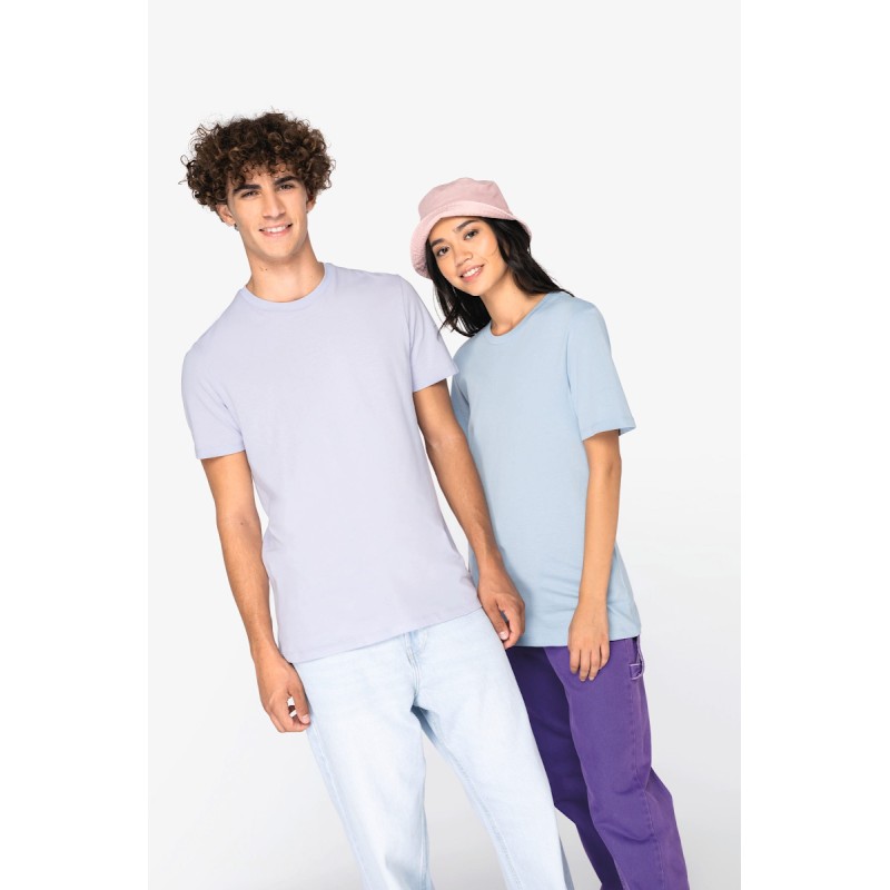 100% coton biologique. Coton peigné ringspun. Coupe ajustée. Coutures latérales. Lavé aux enzymes. Ourlet double surpiqûre bas de manches et bas de vêtement. Bord côte col 1 x 1. Bande de propreté en jersey ton sur ton à l’encolure.