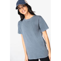 100% coton biologique. Coton peigné ringspun. Coupe droite. Coutures latérales. Lavé aux enzymes. Bord côte col 1 x 1. Bande de propreté intérieure col en chevrons. Double surpiqûre aux emmanchures, épaules et encolure. Ourlet double surpiqûre bas de manches et bas de vêtement. Vêtement teint après montage : les couleurs peuvent légèrement varier d’une pièce à l’autre. Ce produit est susceptible de déteindre aucontact avec des surfaces ou vêtements clairs.