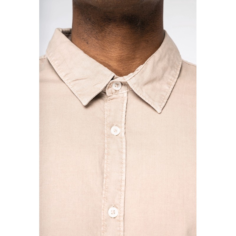 100% coton biologique. Coton peigné. Coupe ajustée. Patte de boutonnage classique avec boutons effet nacré. Empiècement dos « pli rond » décontracté. Patte de manche en pointe « capucin » boutonnée. Vêtement teint après montage : les couleurs peuvent légèrement varier. Ce produit est susceptible de déteindre au contact avec des surfaces ou vêtements clairs.