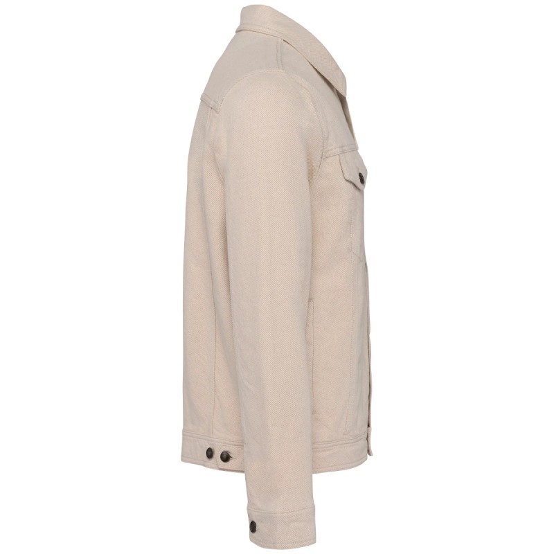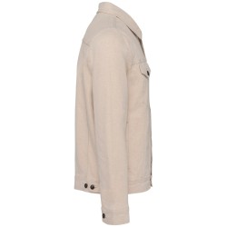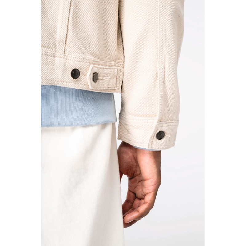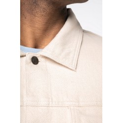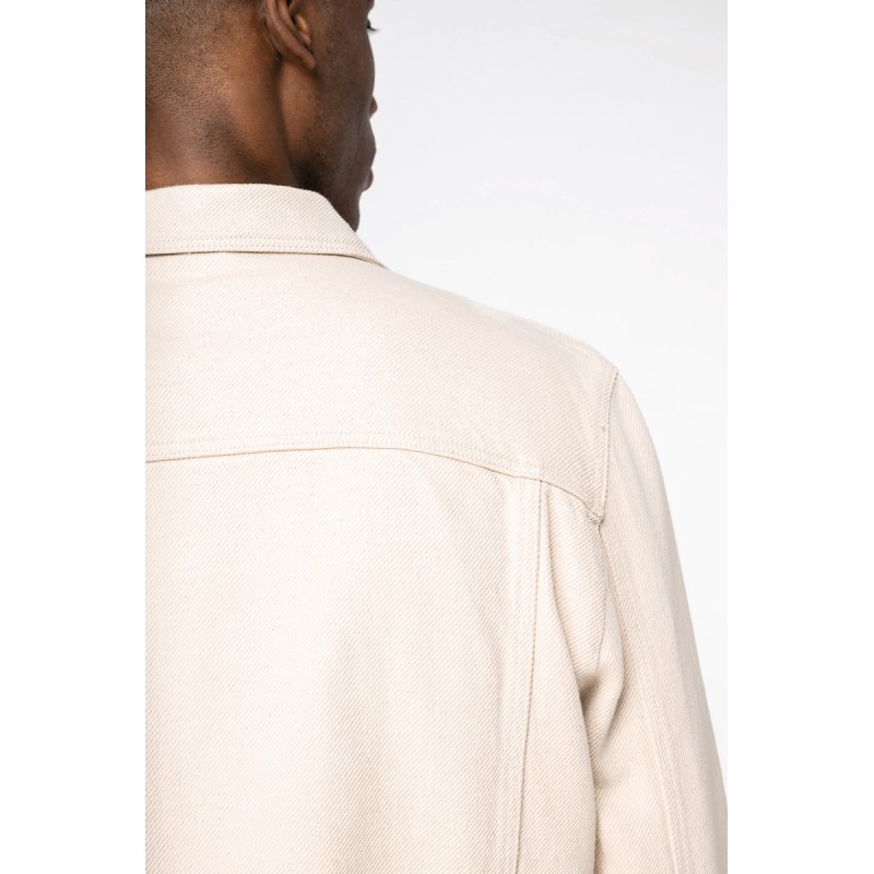 90% coton biologique / 10% chanvre. Coton twill. Coupe droite. Boutons en métal recyclés. Tissu naturel (non teint). Lavé aux enzymes. Deux poches poitrine boutonnées avec rabat. Patte de resserrage avec boutons sur bas de vêtement au dos. Deux poches avant passepoilées . Empiècements sur le devant et au dos. Manches avec fentes et poignets boutonnés. La couleur Raw Natural se distingue par son aspect brut visuellement texturé, parsemée de fines particules visibles à l’œil nu.
