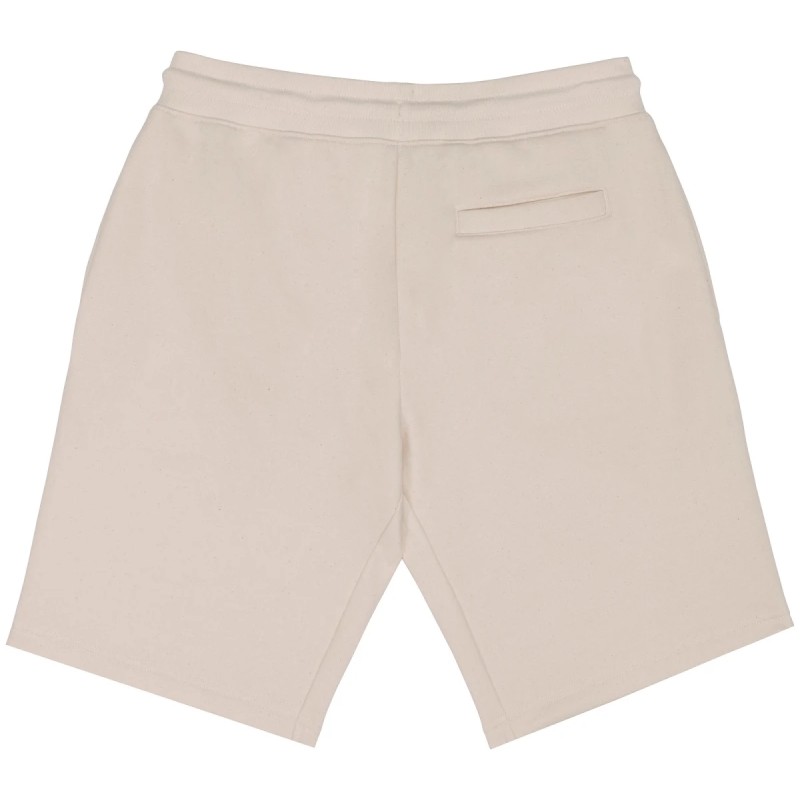 85% coton biologique / 15% polyester recyclé post-consumer. Coton peigné ringspun. Lavé aux enzymes. Molleton gratté 3 fils LSF (Low Shrinkage Fleece). Ceinture bord cote 1 x 1 avec cordon de serrage. OEillet boutonnière pour cordon ceinture. Poches côtés. 1 poche arrière passepoilée. Ourlet bas de jambes double surpiqûre. La couleur Raw Natural se distingue par son aspect brut visuellement texturé, parsemée de fines particules visibles à l’œil nu.
