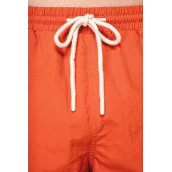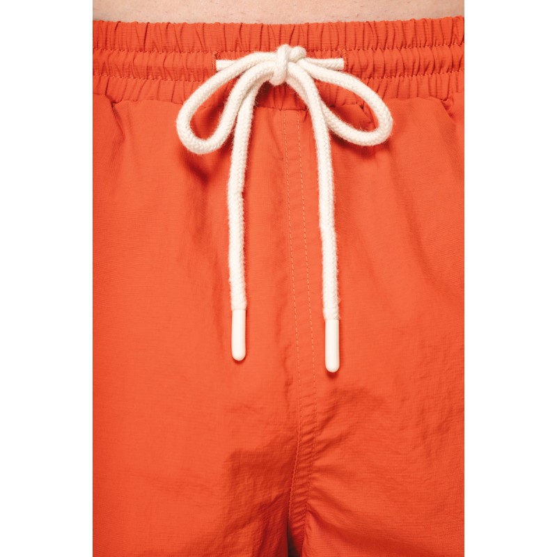 Extérieur : 100% polyamide recyclé pre-consumer. Doublure intérieure en filet : 100% polyester recyclé post-consumer. Tissu ripstop. 2 poches côtés avec une surpiqûre. Double surpiqûres couture côté, entrejambe, fourche devant et dos. Ceinture élastiquée avec cordon de serrage rond en coton biologique et embouts contrastés sur toutes les couleurs. Intérieur ceinture élastiquée contrastée sur toutes les couleurs. Slip intérieur en filet avec finition biais élastiqué. Poche plaquée au dos avec surpiqûres en ouverture poche et œillet brodé. Point de renfort ceinture milieu dos pour maintenir le cordon. Ourlet simple surpiqûre bas de vêtement.