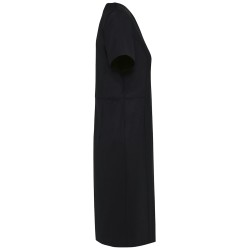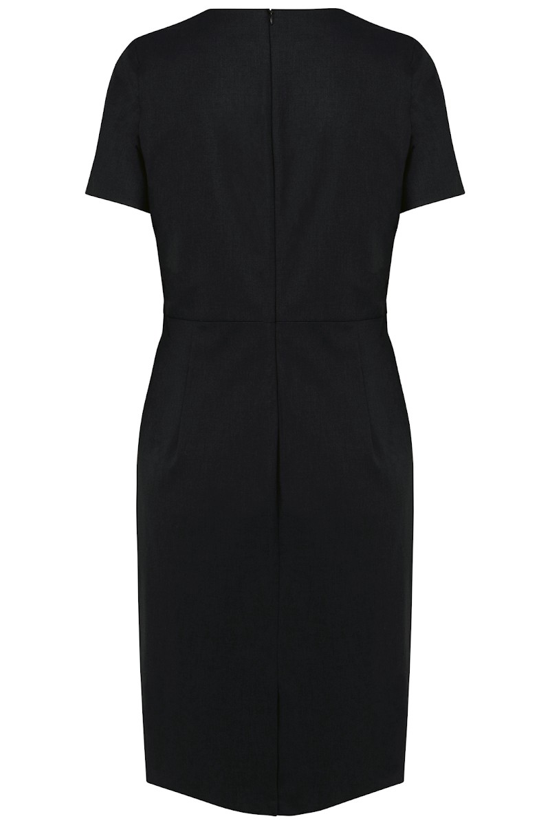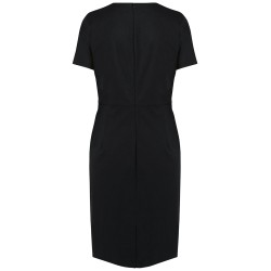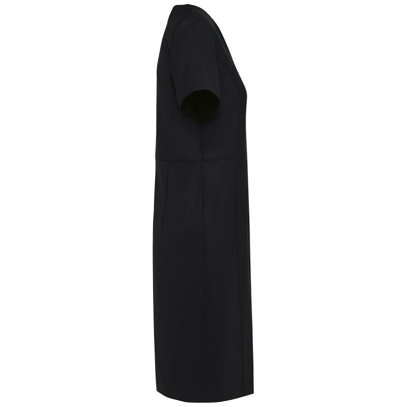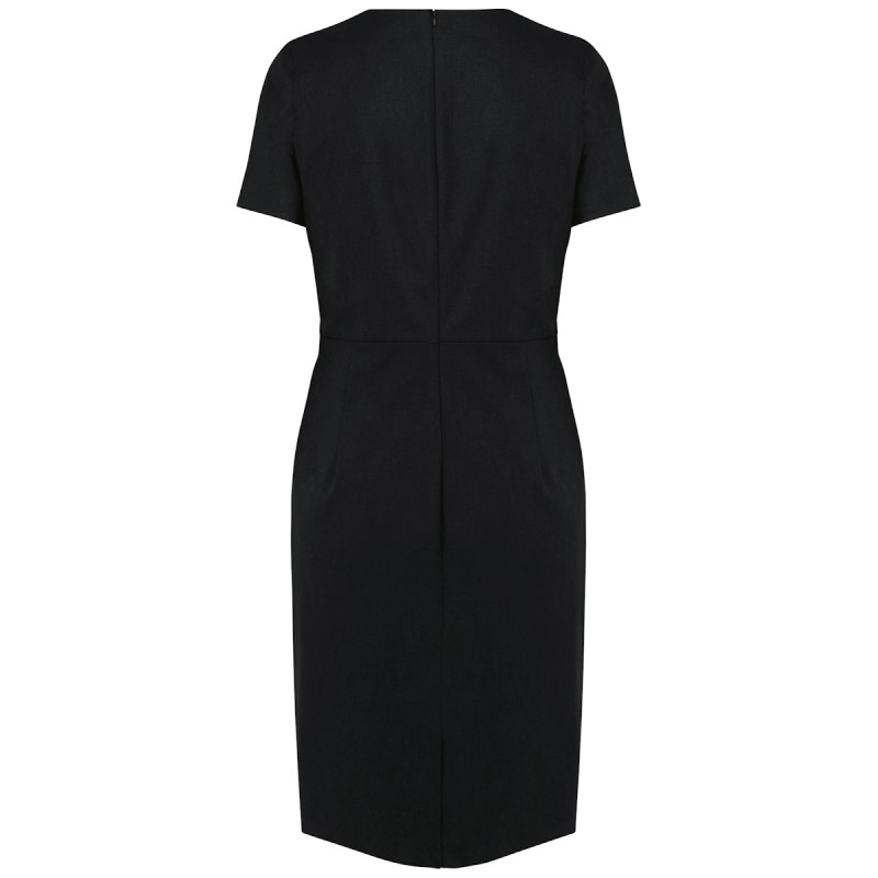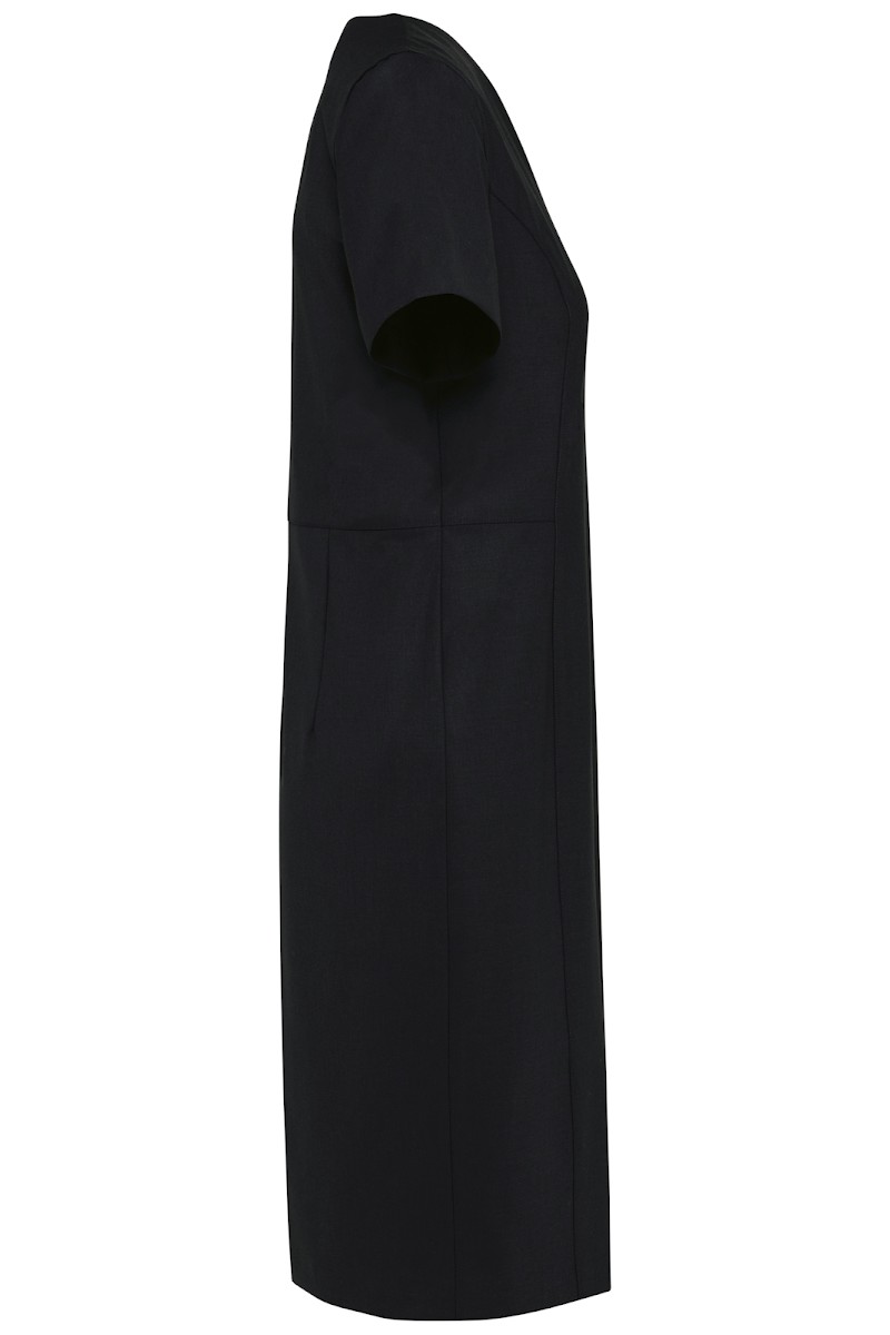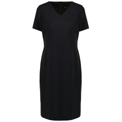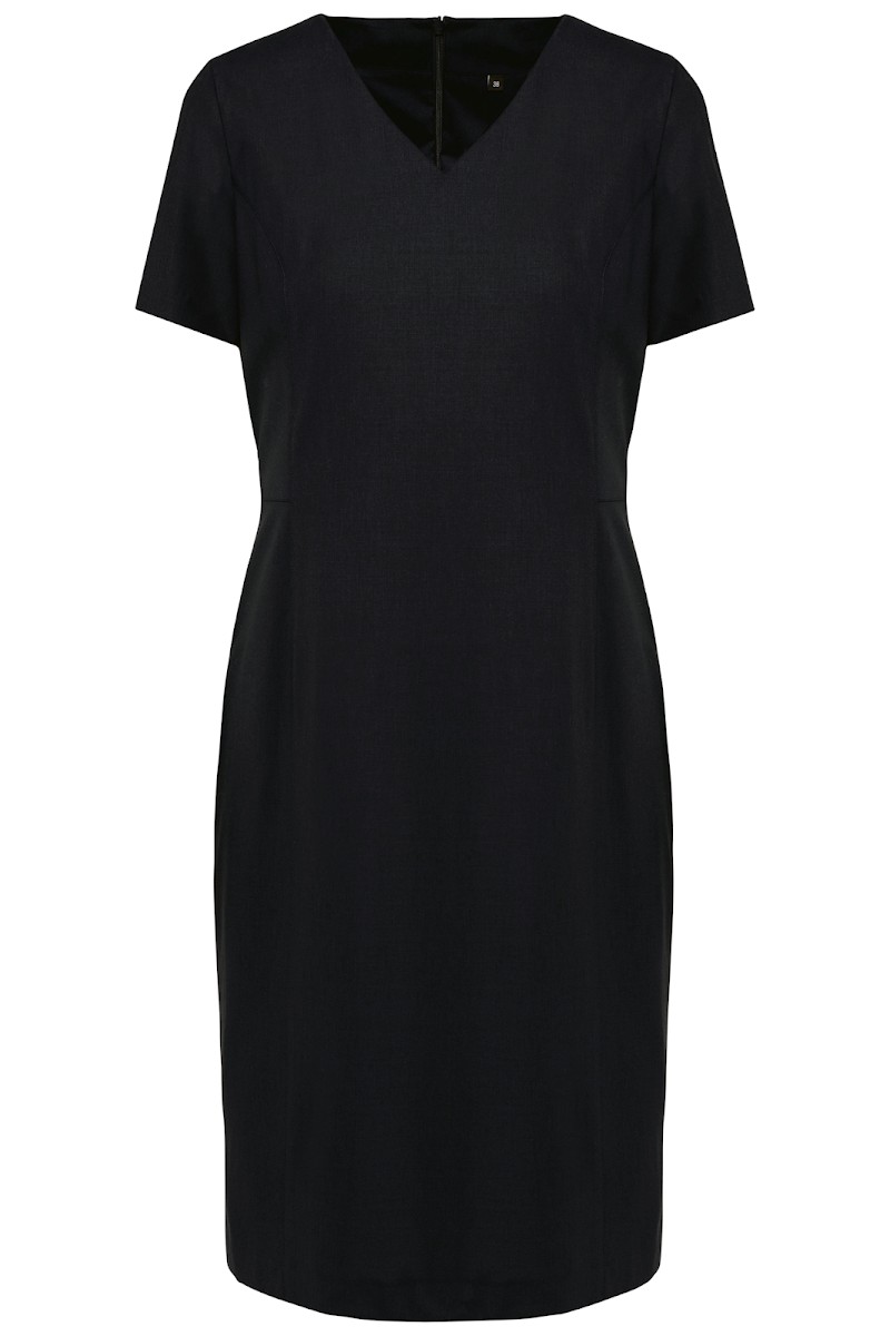 50% polyester / 23% viscose / 22% laine / 5% élasthanne. Doublure 100% polyester stretch uniquement sur le corps. Découpe princesse avec empiècement à piqûre nervure qui aplati la couture et la renforce. Encolure en V avec finition intérieure doublée. Fermeture zippée invisible dans le dos. 2 pinces taille dans le dos. Fente d'aisance au bas du dos. Doublure volante avec fente. Pas d'étiquette de marque, uniquement une puce de taille pour faciliter la personnalisation.