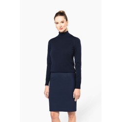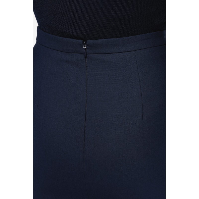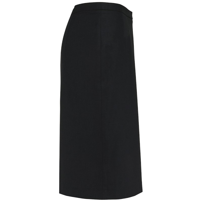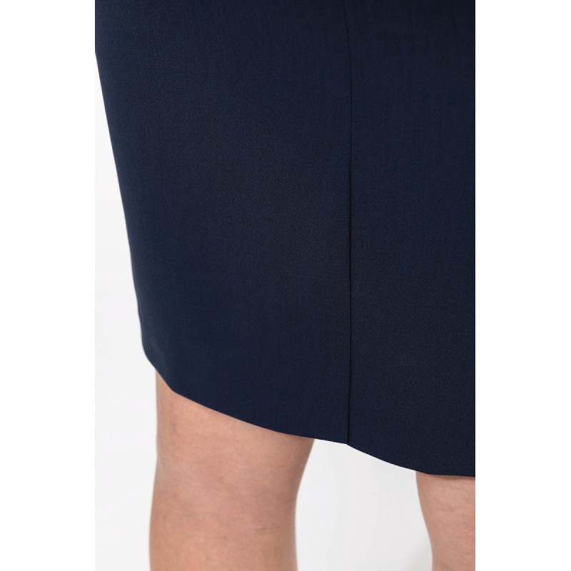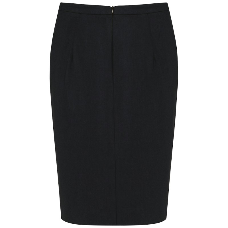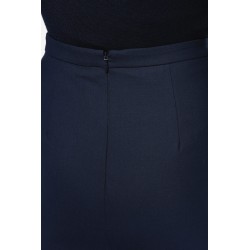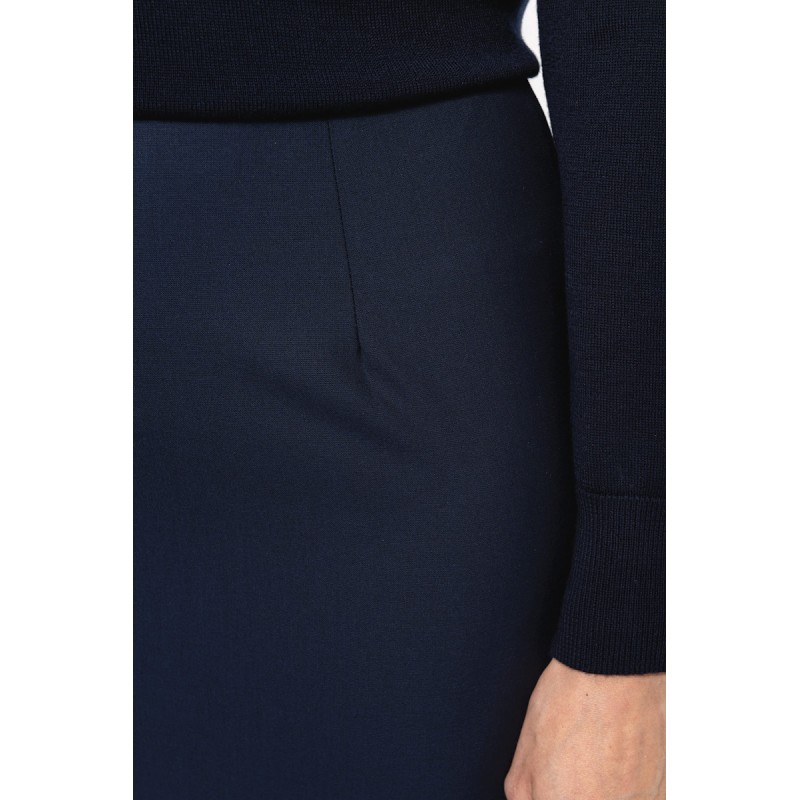 50% polyester / 23% viscose / 22% laine / 5% élasthanne. Doublure 100% polyester stretch. 2 pinces devant à la taille ainsi que 2 pinces au dos. Zip d'ouverture au dos, protégé à l'intérieur par un sous-pont maintenu par un bouton permettant plus de confort. Fente derrière au bas de la jupe, doublure volante avec fente. Coupe droite. Pas d'étiquette de marque, uniquement une puce de taille pour faciliter la personnalisation.