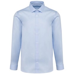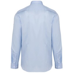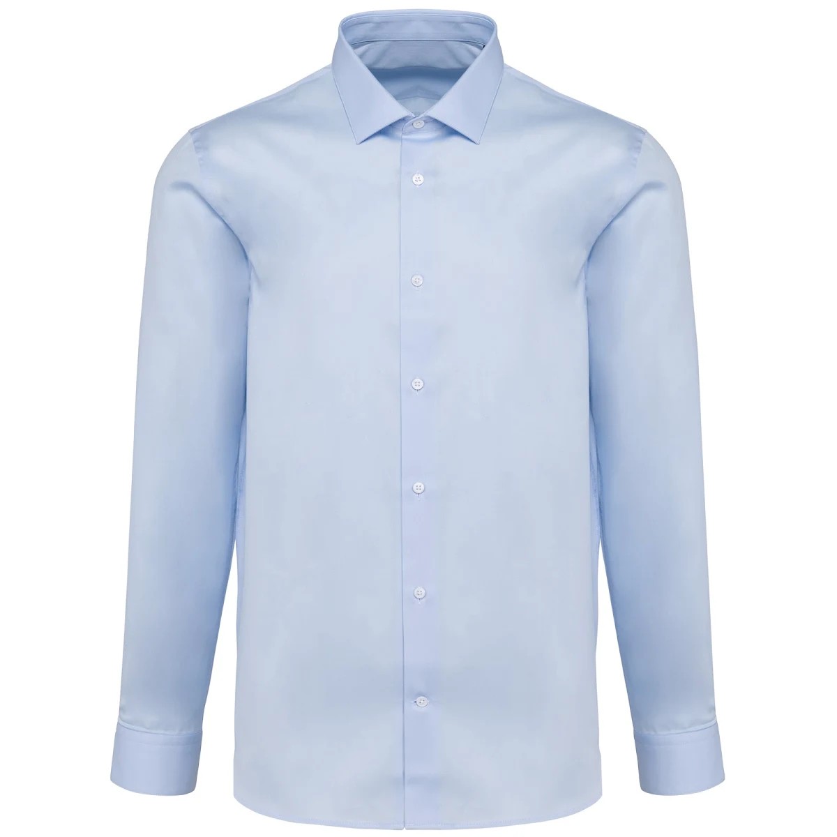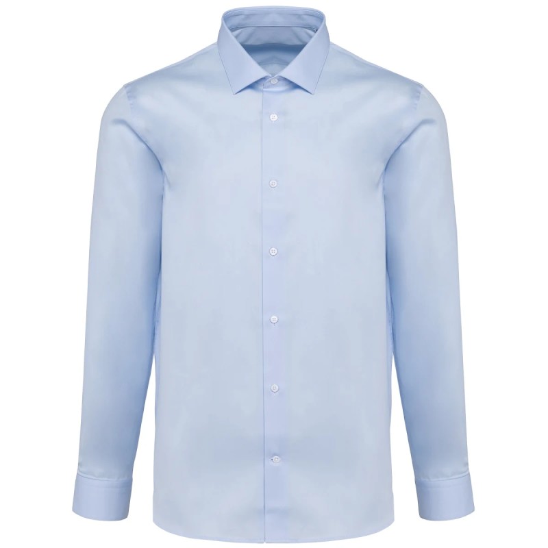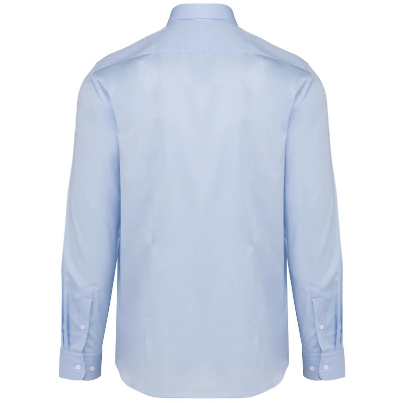 100% coton. Tissu twill. Entretien facile (traitement Easy care). Fil double retors 80x2 de qualité supérieure. Col Italien avec baleines amovibles. Boutons en nacre. Empiècement haut du dos. 2 pinces dans le dos. Coupe ajustée. Poignées 2 boutons à angles arrondis. Hirondelles sur les côtés. Pas d'étiquette de marque, uniquement une étiquette de taille pour faciliter la personnalisation.