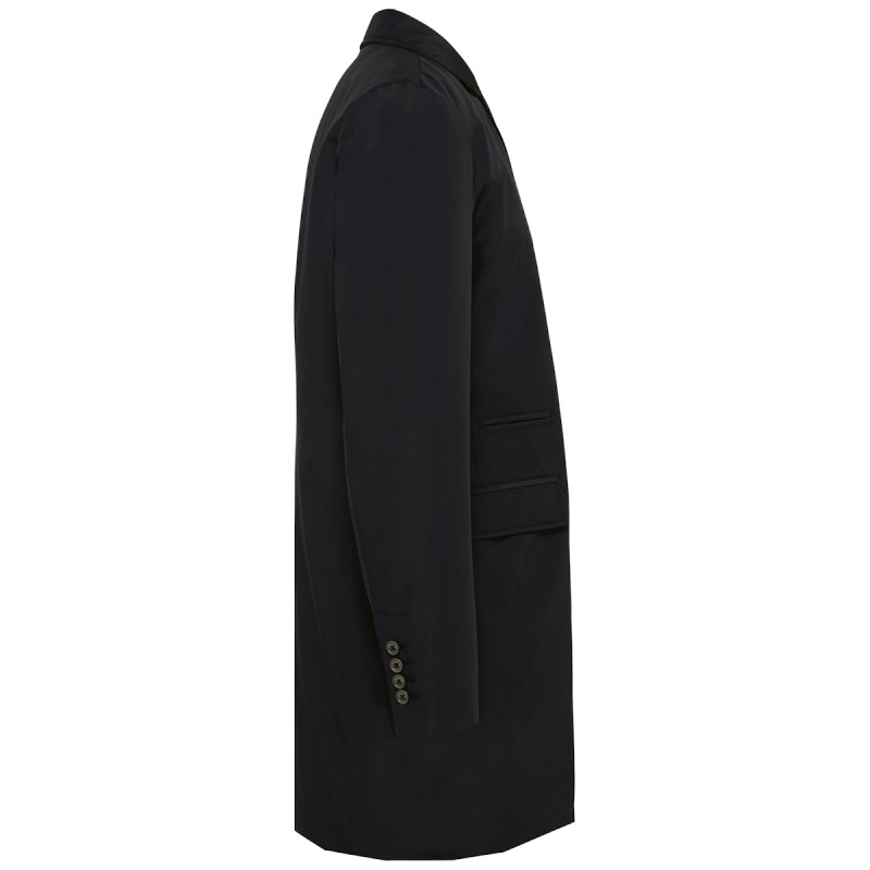 100% polyester. 3 couches contrecollées. Tissus imperméable 8000 mm. Rembourrage intérieur en Thinsulate™. Coupe-vent col tailleur avec intérieur de col en feutrine contrasté. Boutonnage sur le devant par boutons métalliques. Boutons métalliques sur bas de manches. 2 poches rabat devant et 1 poche passepoilée à droite. Poche intérieure zippée côté cœur. Fente bas du dos avec pression. Loop à l'encolure pour accrocher le trench. Zips de personnalisation à l'intérieur, bas du dos et côté cœur. Patch personnalisable dans le haut du dos. Pas d'étiquette de marque, uniquement une puce de taille pour faciliter la personnalisation.