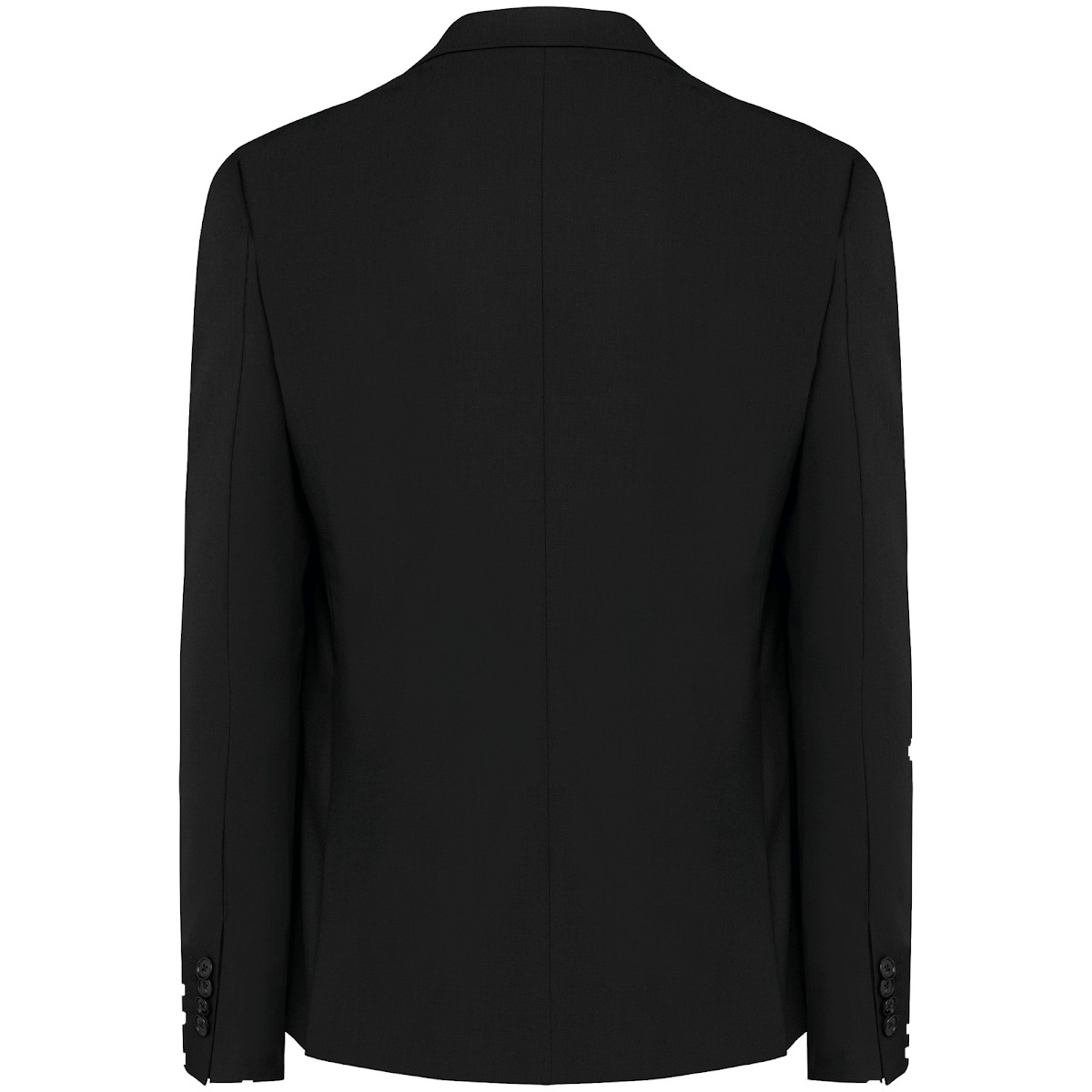 50% polyester / 23% viscose / 22% laine / 5% élasthanne. Doublure en twill (100% polyester) ton sur ton ton. Coupe ajustée. Veste à deux boutons ton sur ton. Deux poches passepoilées avec rabats, ainsi qu'une poche poitrine passepoilée côté cœur. Fausse boutonnière ton sur ton sur revers de col. Empiècement côté qui vient donner la forme au produit. Bride de suspension en satin à l'encolure. Couture milieu dos avec deux fentes bas de vêtement. Bas de manches avec fausse fente à 4 boutons ton sur ton. Finition avec un biais contrasté, pour les deux poches poitrines intérieures. Une poche téléphone et une poche ticket passepoilées ton sur ton intérieur gauche du vêtement au porté. Zip de personnalisation côté gauche au porté. Pas d'étiquette de marque, uniquement une puce de taille pour faciliter la personnalisation.